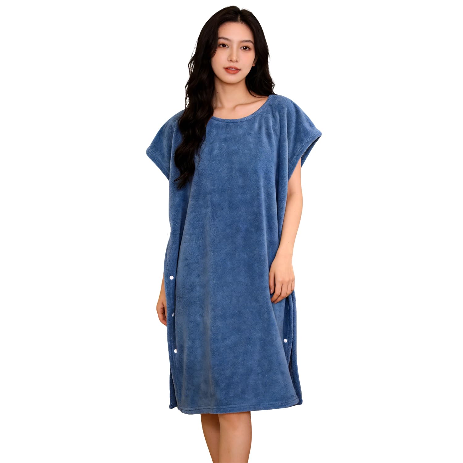 着るタオル レディース ラップタオル 大人用 マイクロファイバー 湯上がりワンピース 吸水 速乾 お着換えポンチョ お風呂上り 湯冷め防止 子育てママ ワンオペ バスローブ ルームウェア (ブルー)