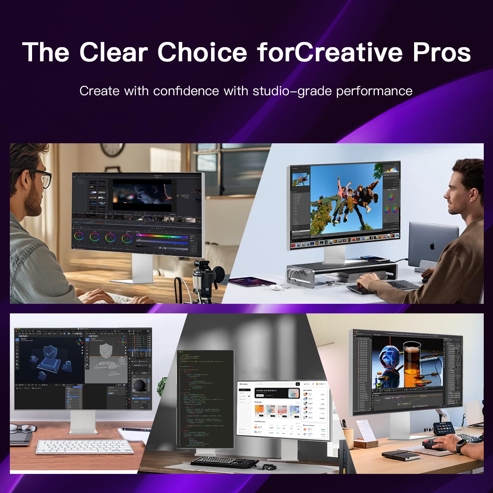 ■ 27インチ 高解像度 4K ディスプレイ 3840×2160 の 4K UHD 解像度と約 138ppi の高精細表示により、フル HD と比べて約 4 倍の表示情報量を実現。広い作業領域で快適なマルチタスクや 4K タイムライン編集が可能です。細部までくっきりと描写され、日常業務からクリエイティブ用途まで幅広く対応します。