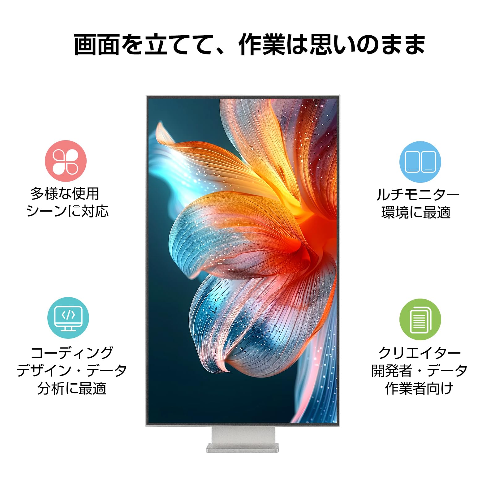 ■ 32インチ 高解像度 4K ディスプレイ 3840×2160 の 4K UHD 解像度と約 138ppi の高精細表示により、フル HD と比べて約 4 倍の表示情報量を実現。広い作業領域で快適なマルチタスクや 4K タイムライン編集が可能です。細部までくっきりと描写され、日常業務からクリエイティブ用途まで幅広く対応します。