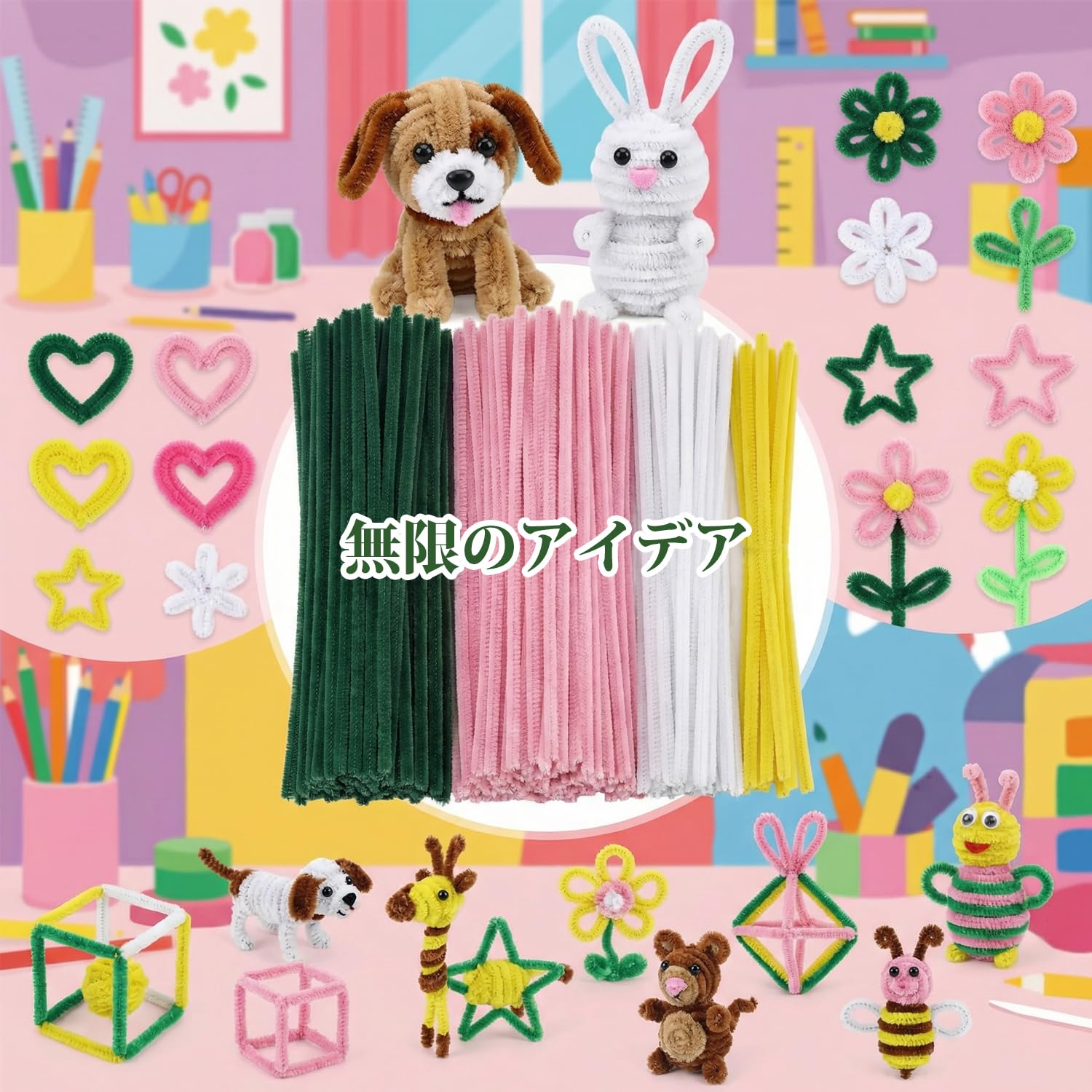 手芸モール カラーミックス ピンク系 約200本 6mm カラーモール 人工花茎20本 フラワーテープ1巻付き モールフラワー DIY 造花 インテリア飾り/手芸用 工作モール 記念日/誕生日/母の日/バレンタインデー贈り物【サクラの作り方を付き】