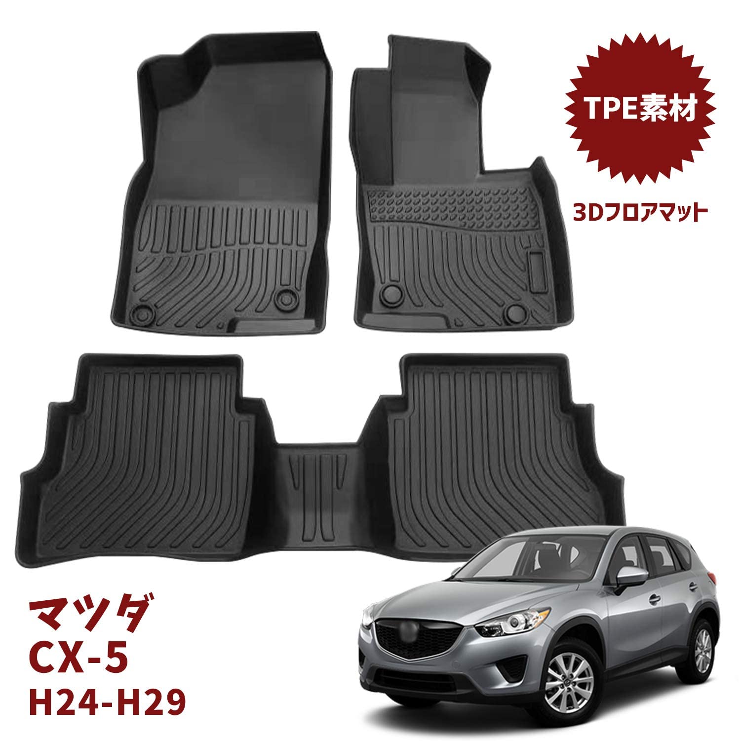 Orealauto マツダ cx5 ke系 フロアマット 防水 3d 純正 ゴムマット 車種別専用 2012-2017 運転席 リア 後部座席 TPE素材 滑り止め カーマット 立体保護 カスタム 足元マット ラバーマット 車内装 インテリア アクセサリー カーパーツ カー用品 3Pセット (Mazda CX-5 KE H24.2-H29.2)