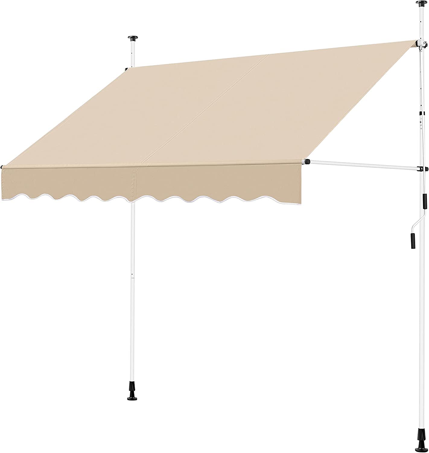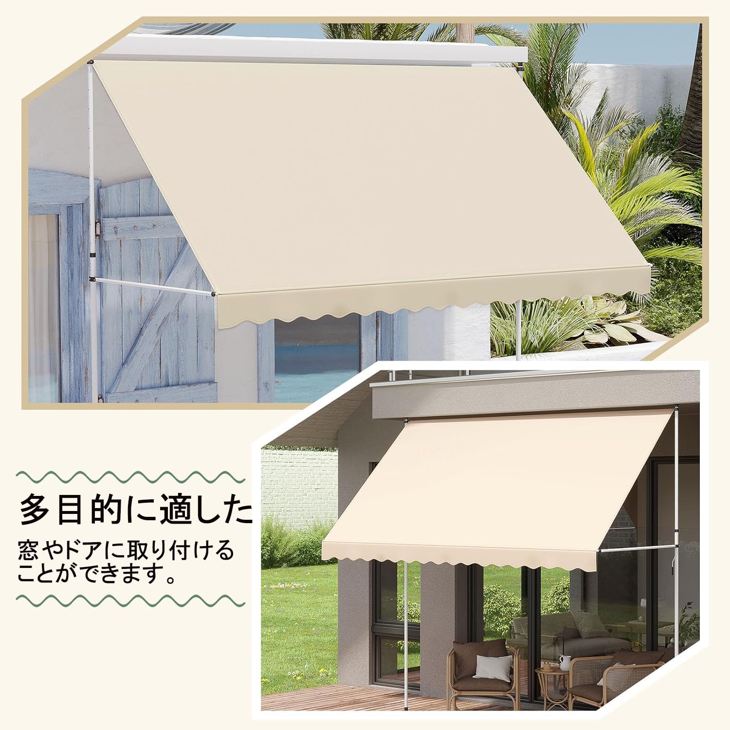 オーニング オーニングテント 伸縮タイプ 日よけ 巻き取り式 サンシェード ひさし 紫外線 UV カット クールサマーオーニング 角度 高さの調節が可能 簡単設置 (ホワイトのポールベージュの布, 300cm)