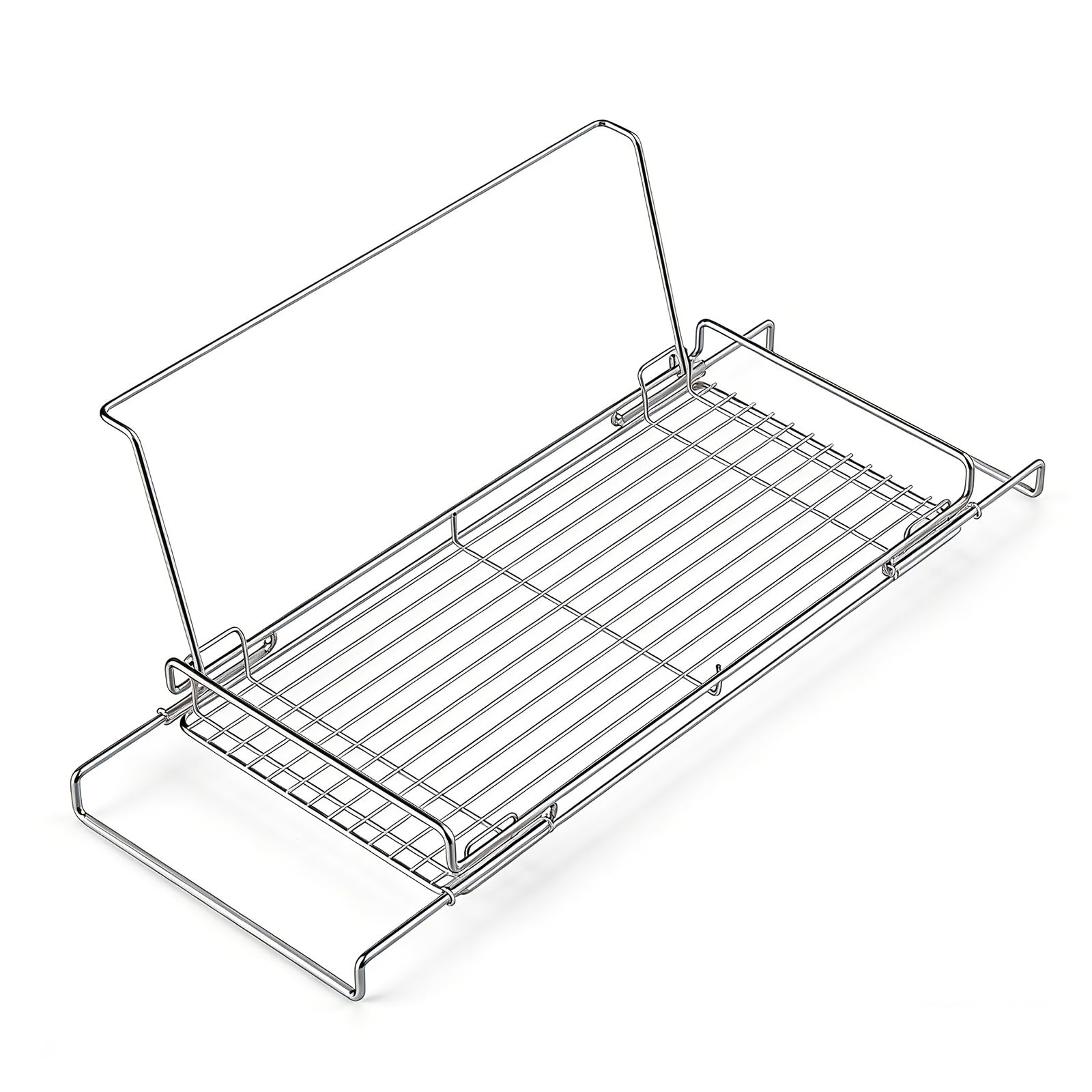 Poywaze 水切りラック シンク上 2段 伸縮 ステンレス 折りたたみ 食洗機対応 水筒立て付き 省スペース 大容量 滑り止め付き 背もたれ付き [約46~60×21×7~19cm]