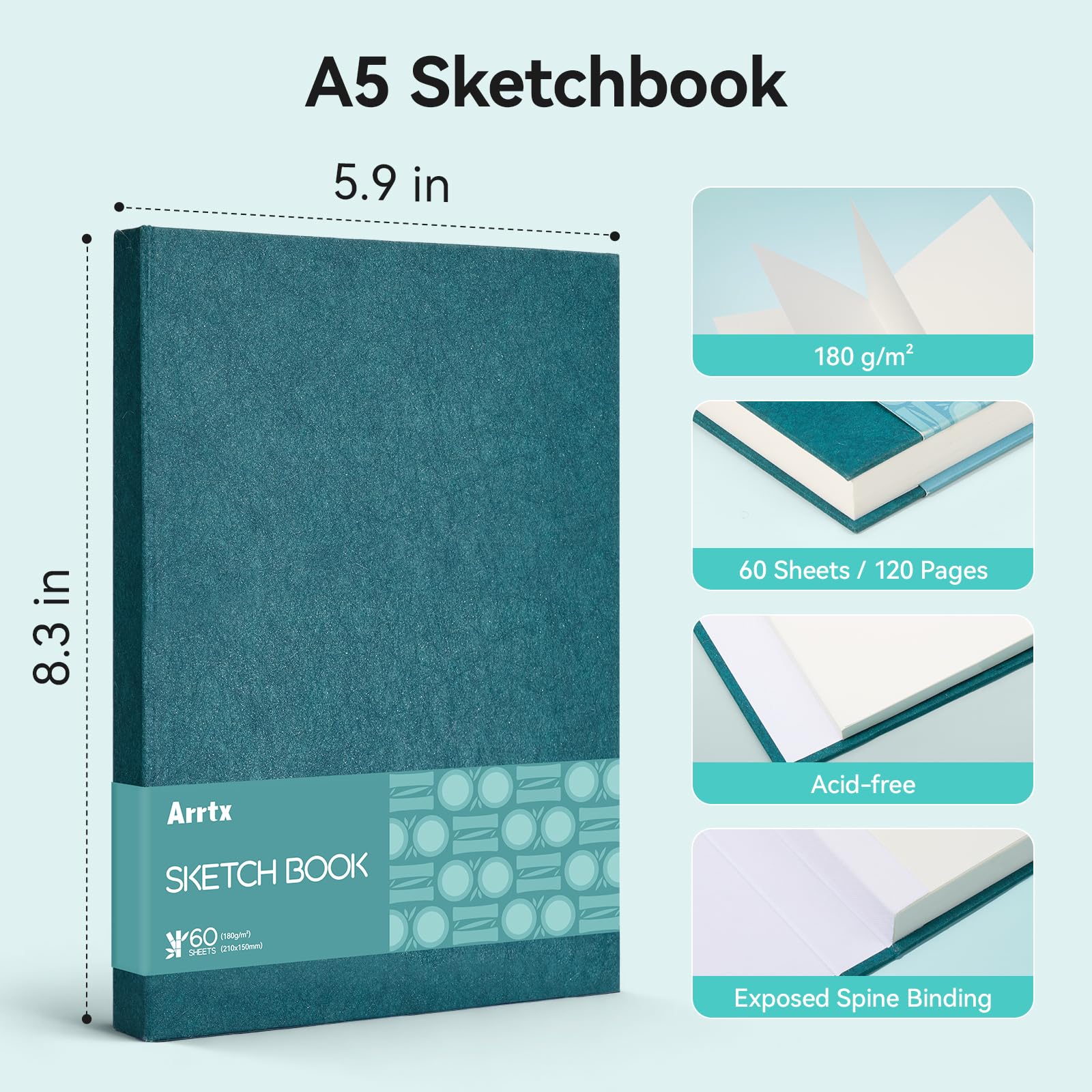 Arrtx スケッチブック 180gsm 厚口画用紙 絵を描く手帳 60枚 スケッチ イラスト お絵かき帳 スクラップブッキング 色鉛筆/水彩毛筆/マーカーペン用画用紙 155mm×110mm