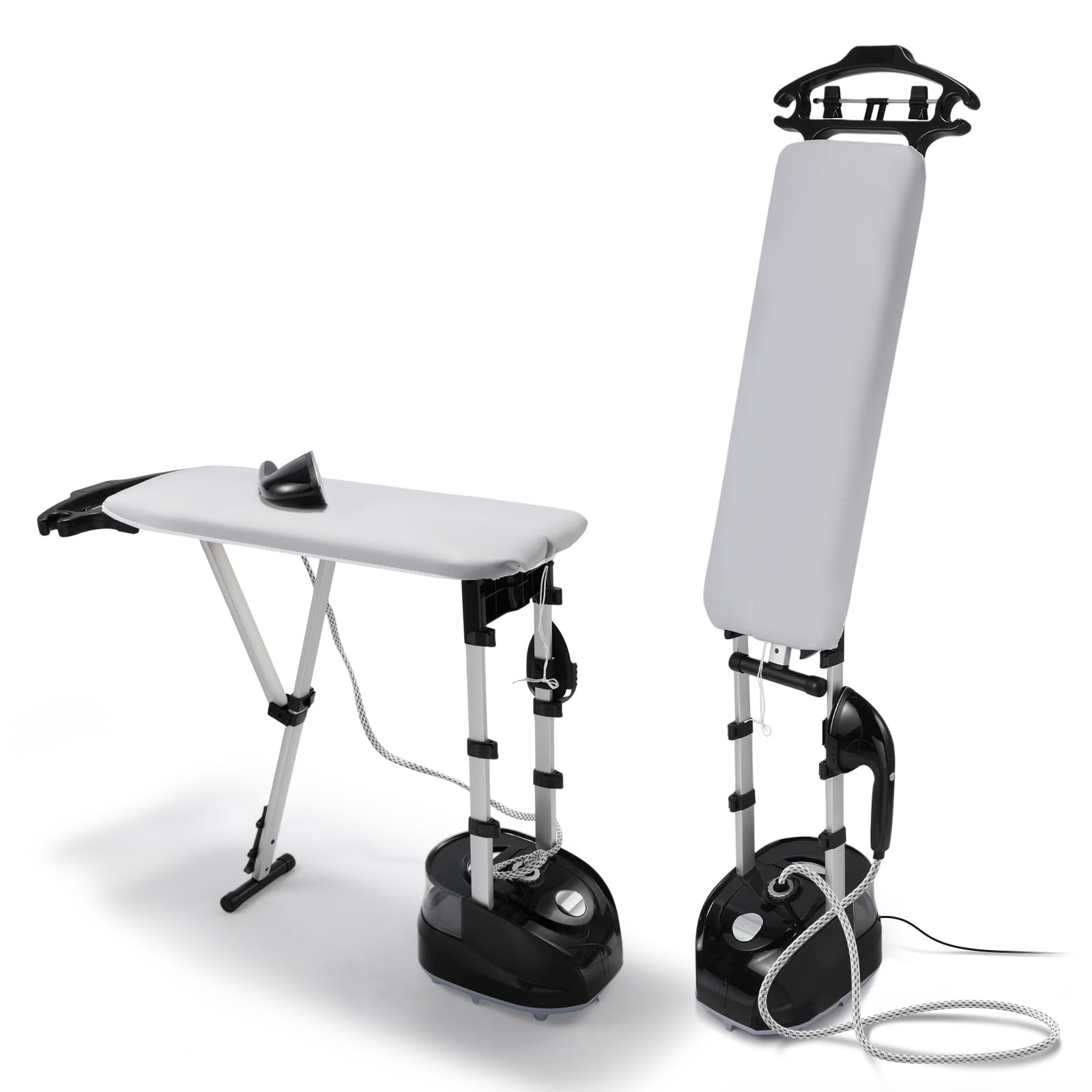 Hapyvergo 衣類スチーマー ハンガースチーマー スチームアイロン アイロンボード付き 1.6L大容量タンク スチーム量調節 ハンガーにかけたまま 1時間連続使用 ガーメントスチーマー 置型 腕が楽 省スペース プロ仕様 日本語説明書付き