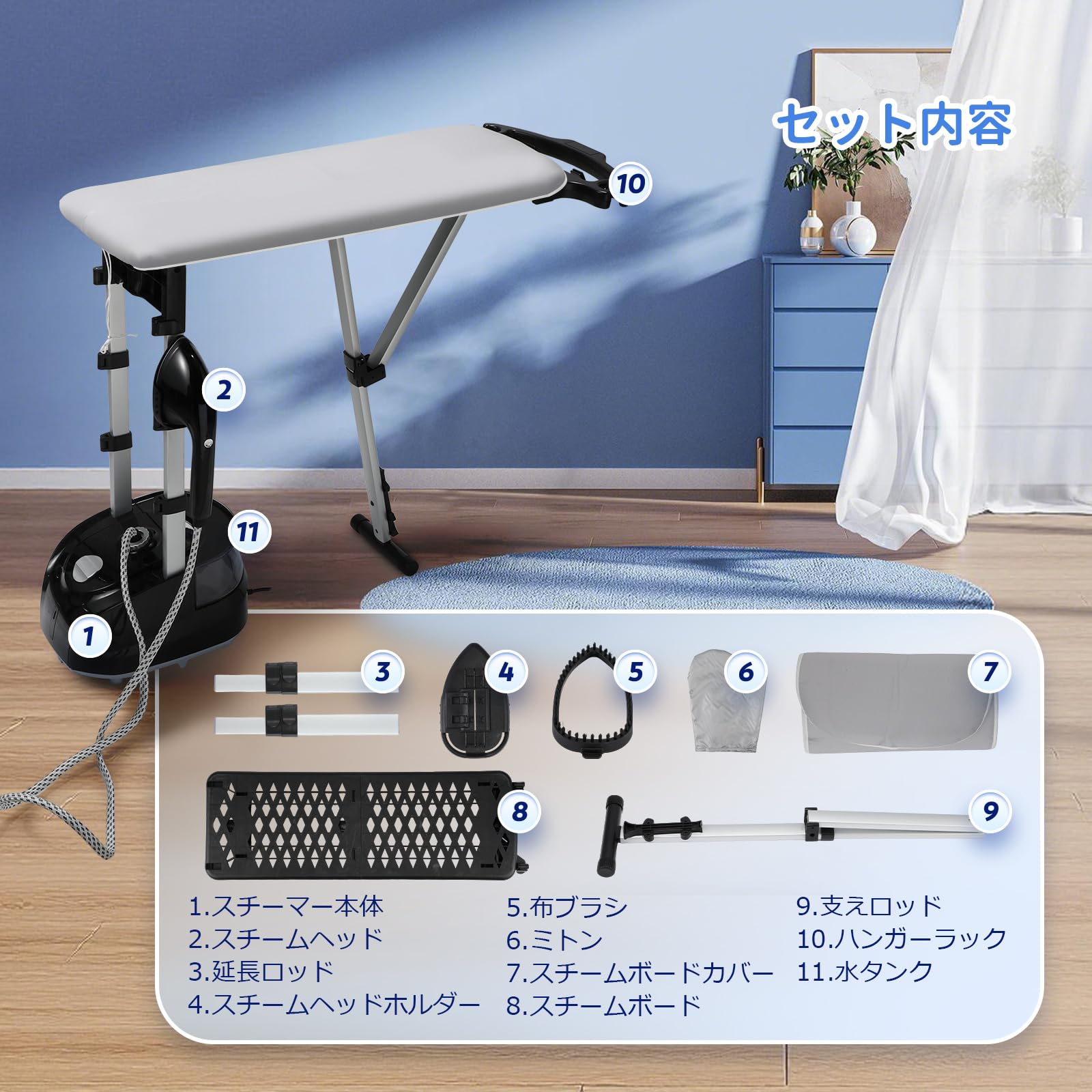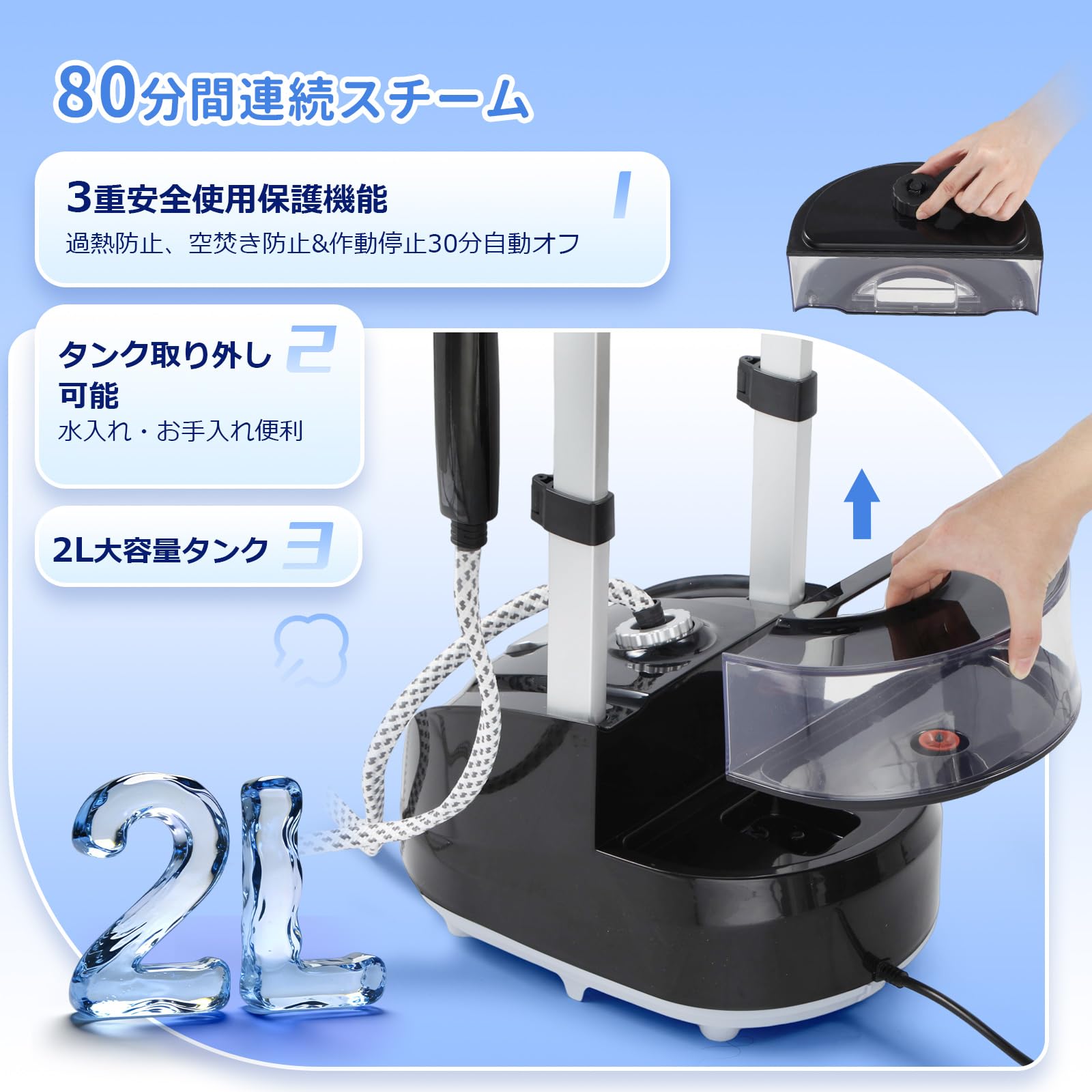 Hapyvergo ガーメントスチーマー 衣類スチーマー アイロン台付き ハンガーにかけたまま 横・縦置き 2L大容量タンク ハンガースチーマー スチームアイロン パワフルスチーム 腕が楽 省スペース 家庭用 業務用 日本語説明書付き