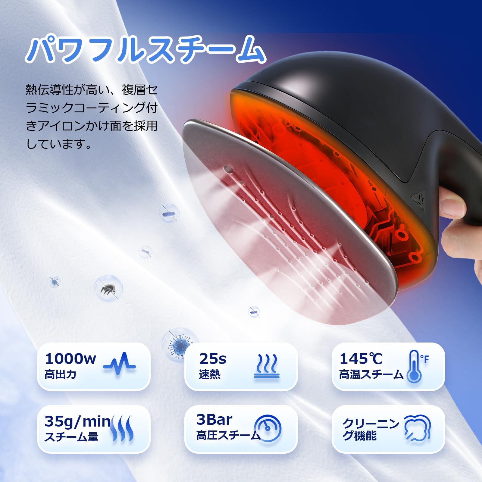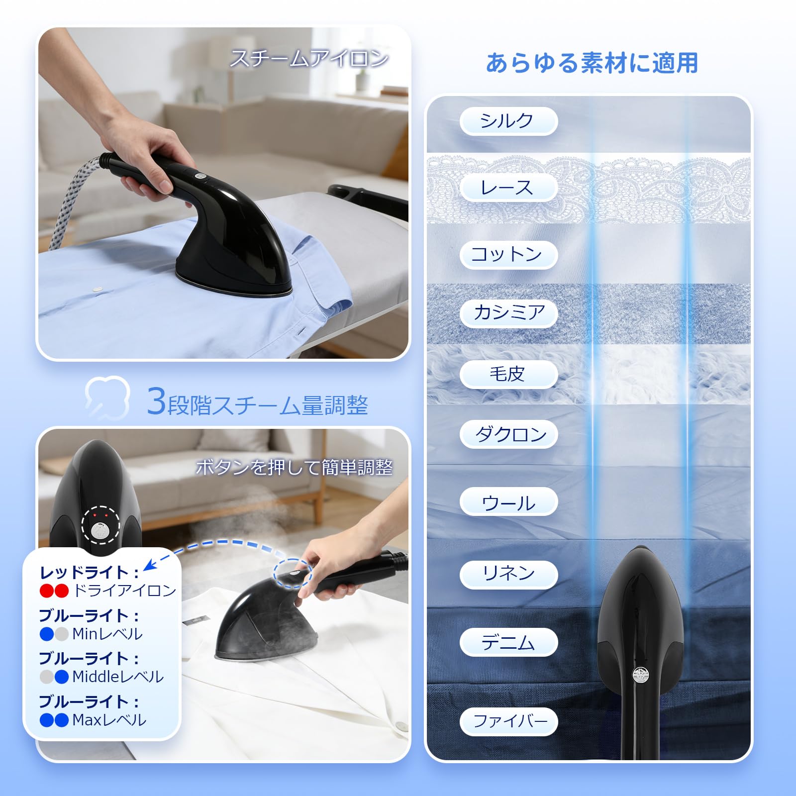 スチーマーアイロン ハンディアイロン 衣類スチーマー スチームアイロン 小型軽量パワフル 25秒立ち上がり 水漏れ防止 200ml水タンク 302℉高温消臭 家庭用オフィス用 折りたたみ式