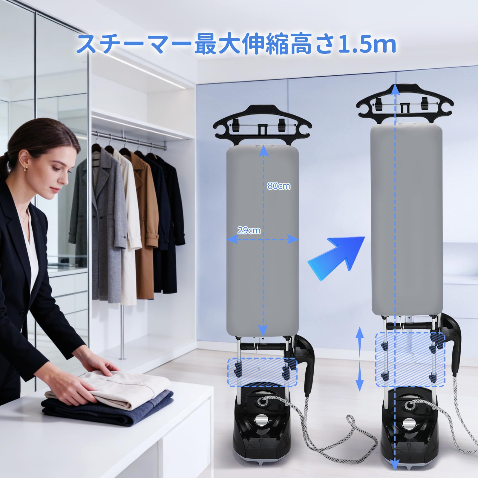 Hapyvergo ハンガースチーマー 衣類スチーマー スチームアイロン 1500W作動 ハンガーにかけたまま 3L大容量タンク 2段階スチーム コード付き 置型 腕が楽 省スペース ハンガーラック付き プロ仕様