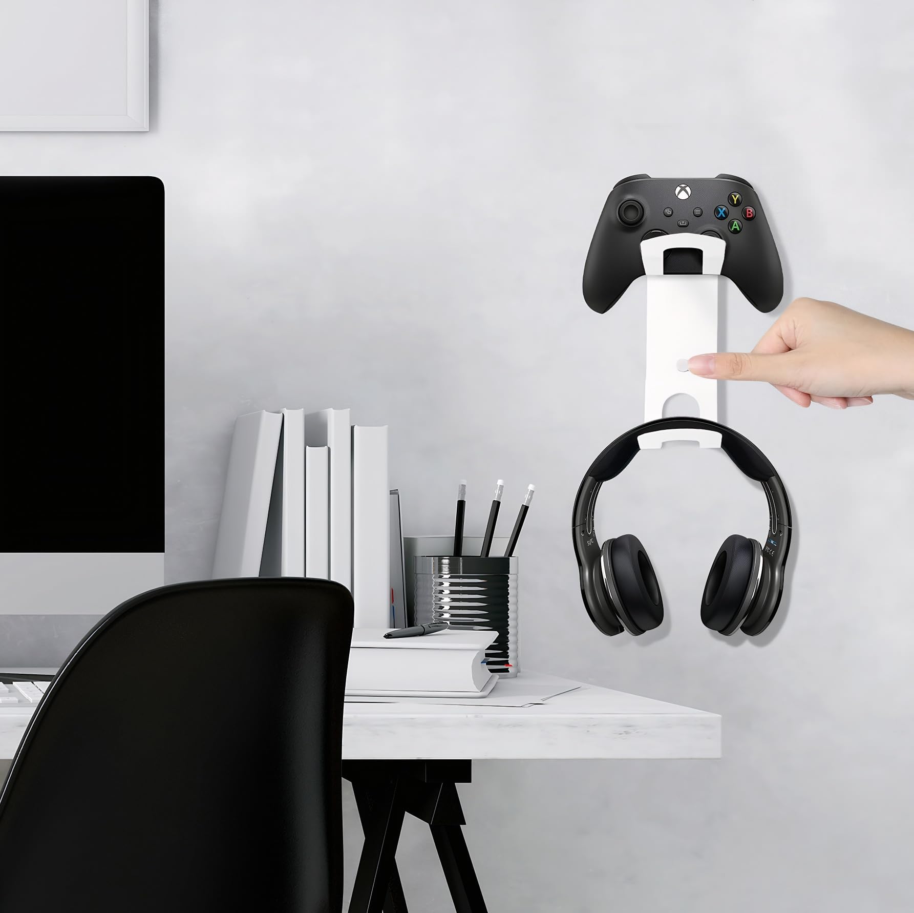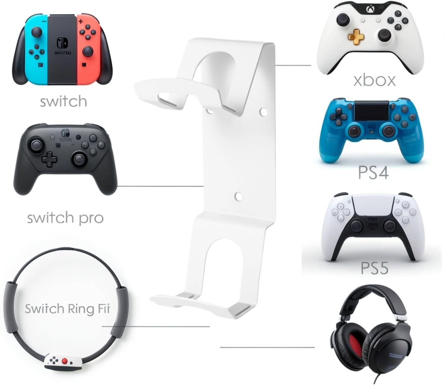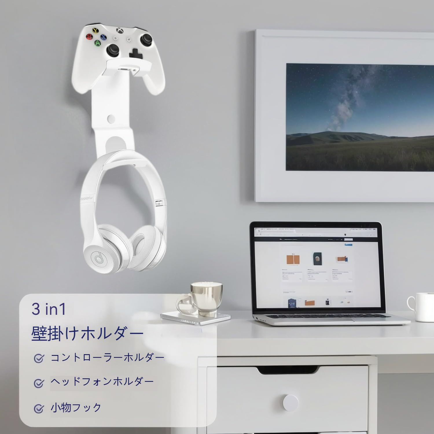 KAIXUANMAN コントローラー スタンド 金属 おしゃれ 石こうボード壁対応 ゲームコントローラー収納ラック プロコン スタンド ヘッドホン フック 掛け 省スペース 壁掛け 2台収納 ホワイト