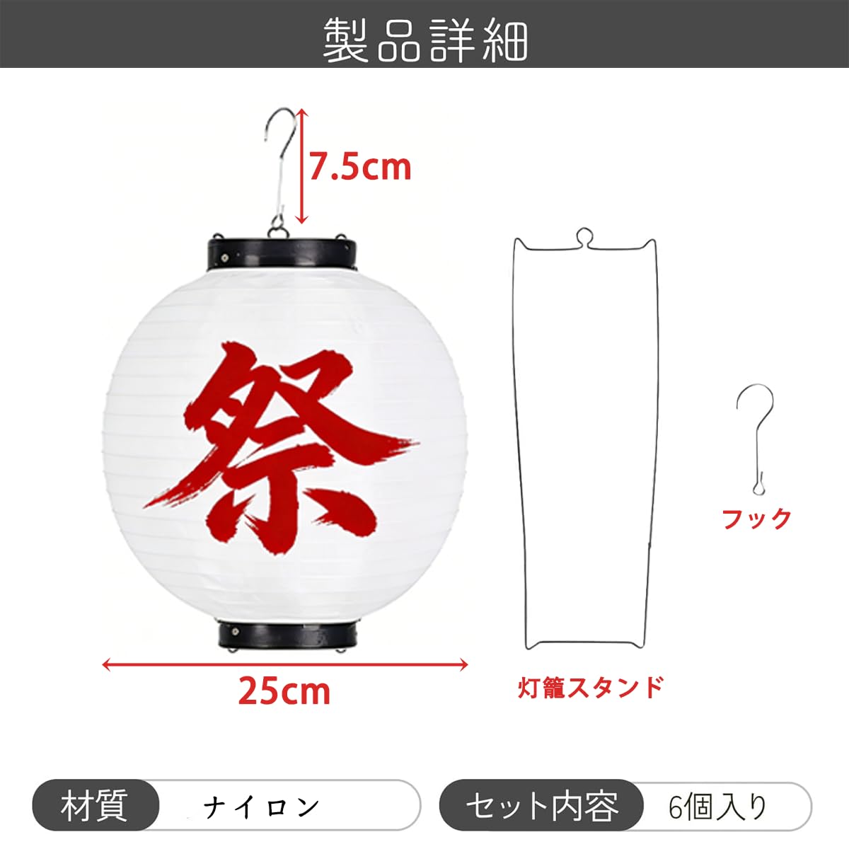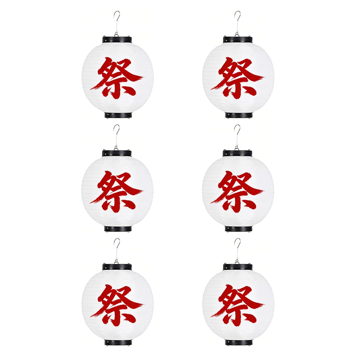 Lanito 提灯 お祭り ちょうちん お盆 ナイロン製 祭 盆提灯 6個セット 七夕 花火大会 装飾 夏祭り 文化祭 屋台 初盆 新盆 イベント飾り 装飾用 丸型 (白)