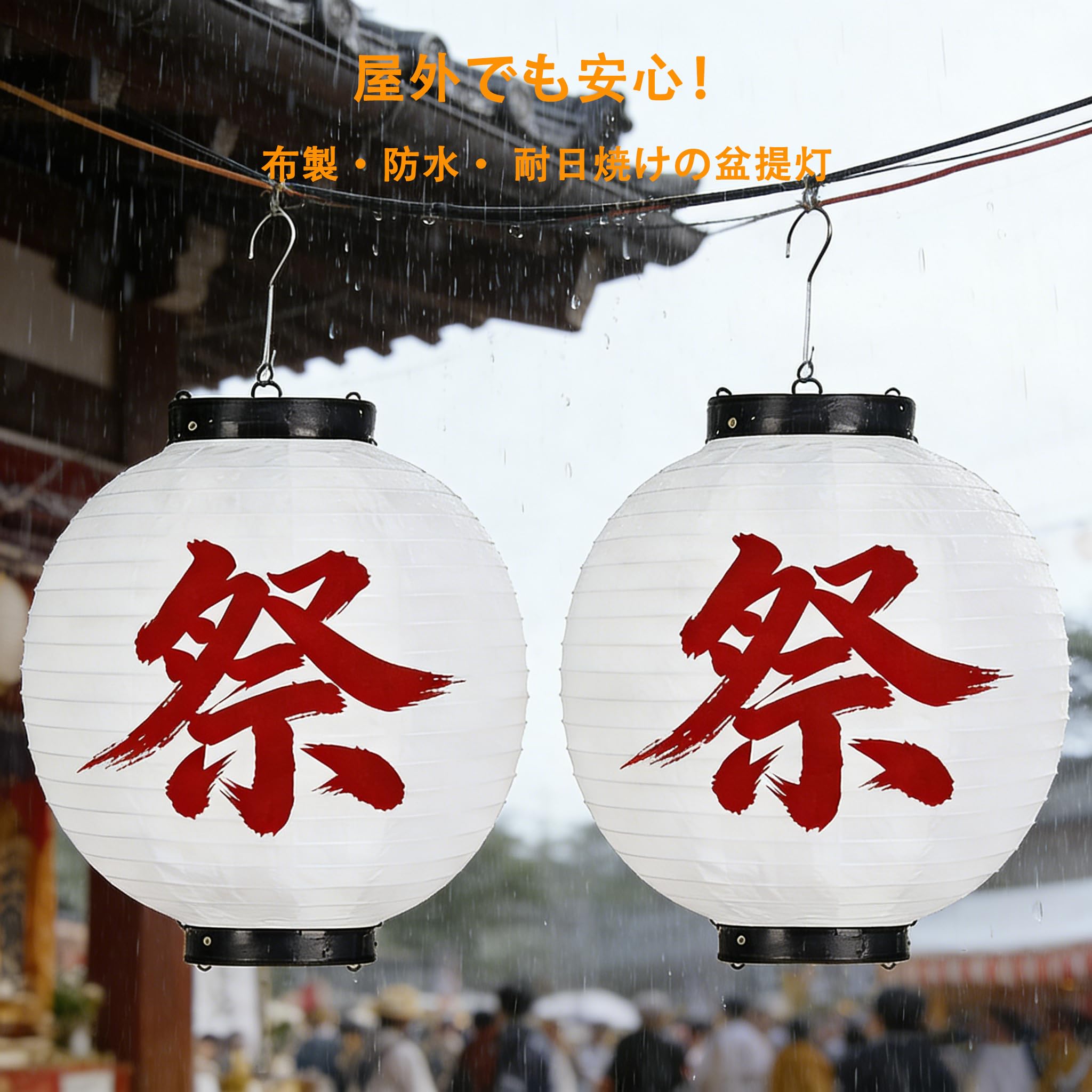 Lanito 提灯 布提灯 長提灯 暖かい白 布ちょうちん お盆 店舗提灯 2個セット 防水 再利用可能 折りたたみ式 燈籠 屋外ランタン お盆飾り イベント お祭り 居酒屋/誕生日/結婚式/出店/DIY絵画/装飾用 (20×35cm)