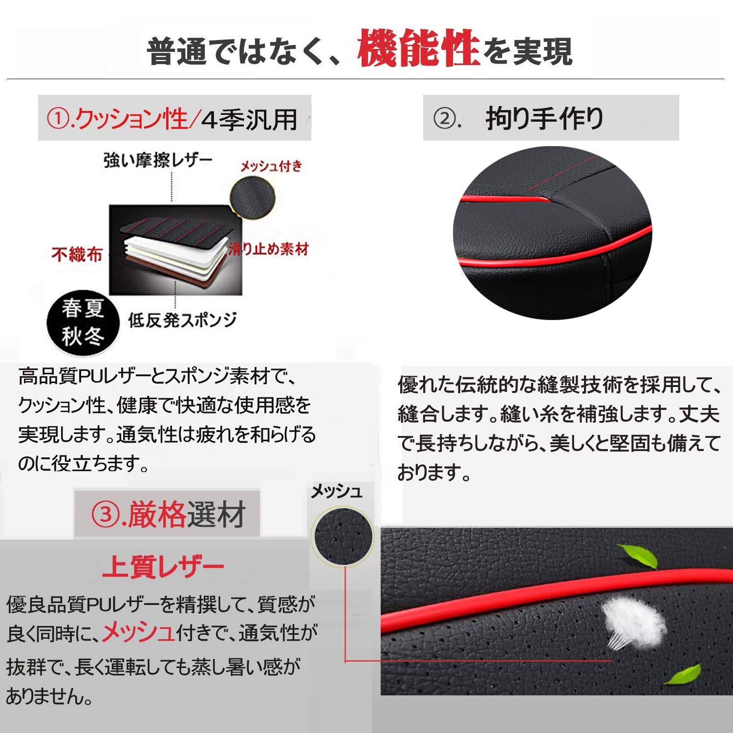 inotenka 車 シートカバー 座面のみ PU レザー 通気性 低反発 車用 座布団 収納ポケット付き 蒸れない 防水 カーシートクッション 運転席 助手席 汎用 滑り止め 約55cm*55cm(黒赤 2枚)