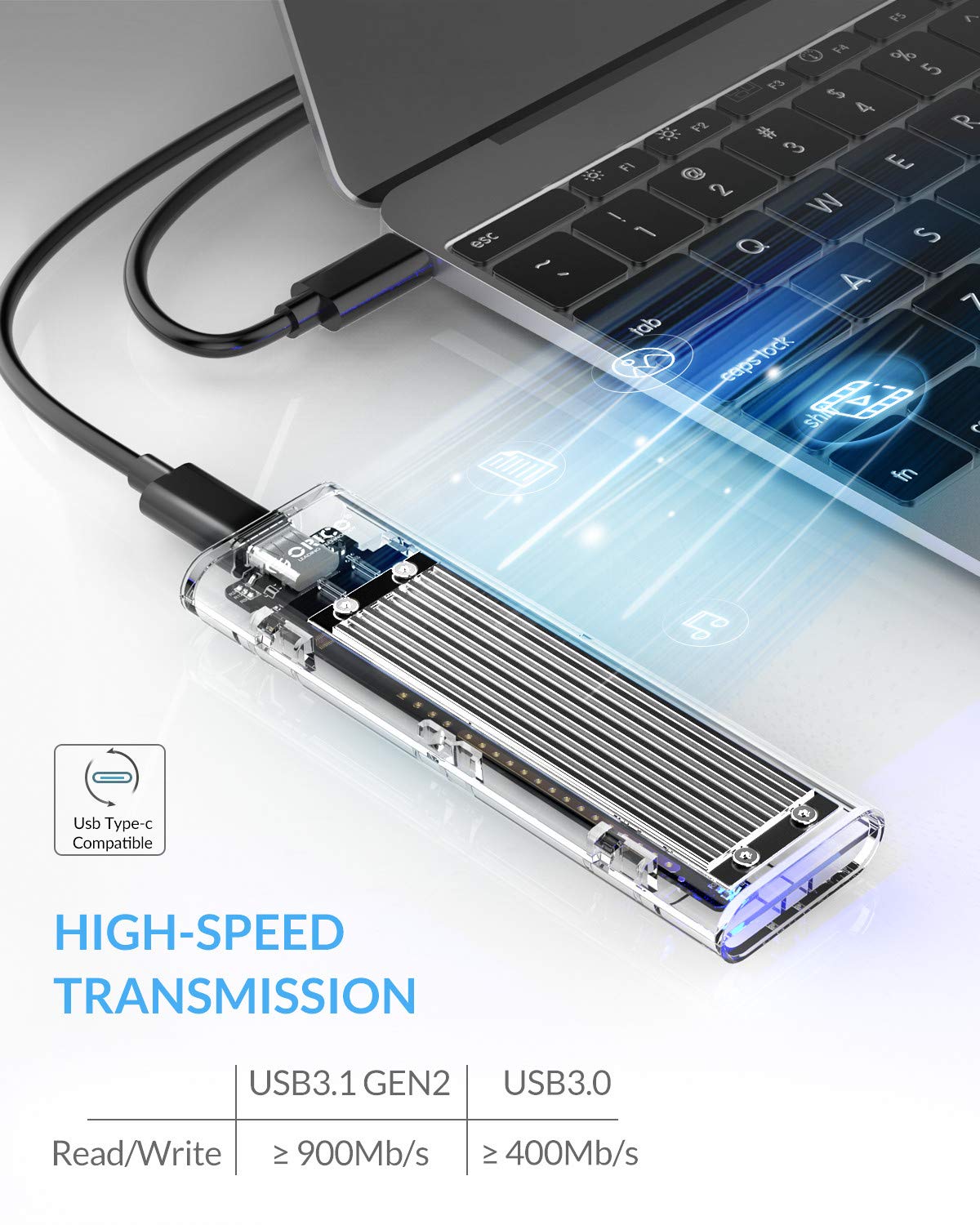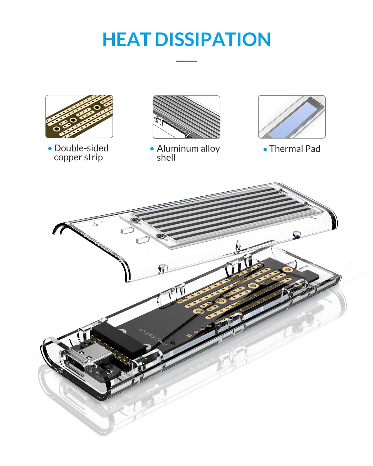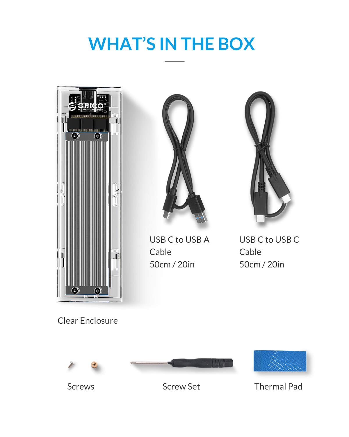【10Gbps】 ORICO M.2 NVMe SSD外付けケース M-Key/B&M Key(Nvmeのみ) USB3.2 Gen2 UASP Trim対応 ダブルケーブル付属 M.2変換アダプタ 透明 TCM2-SV