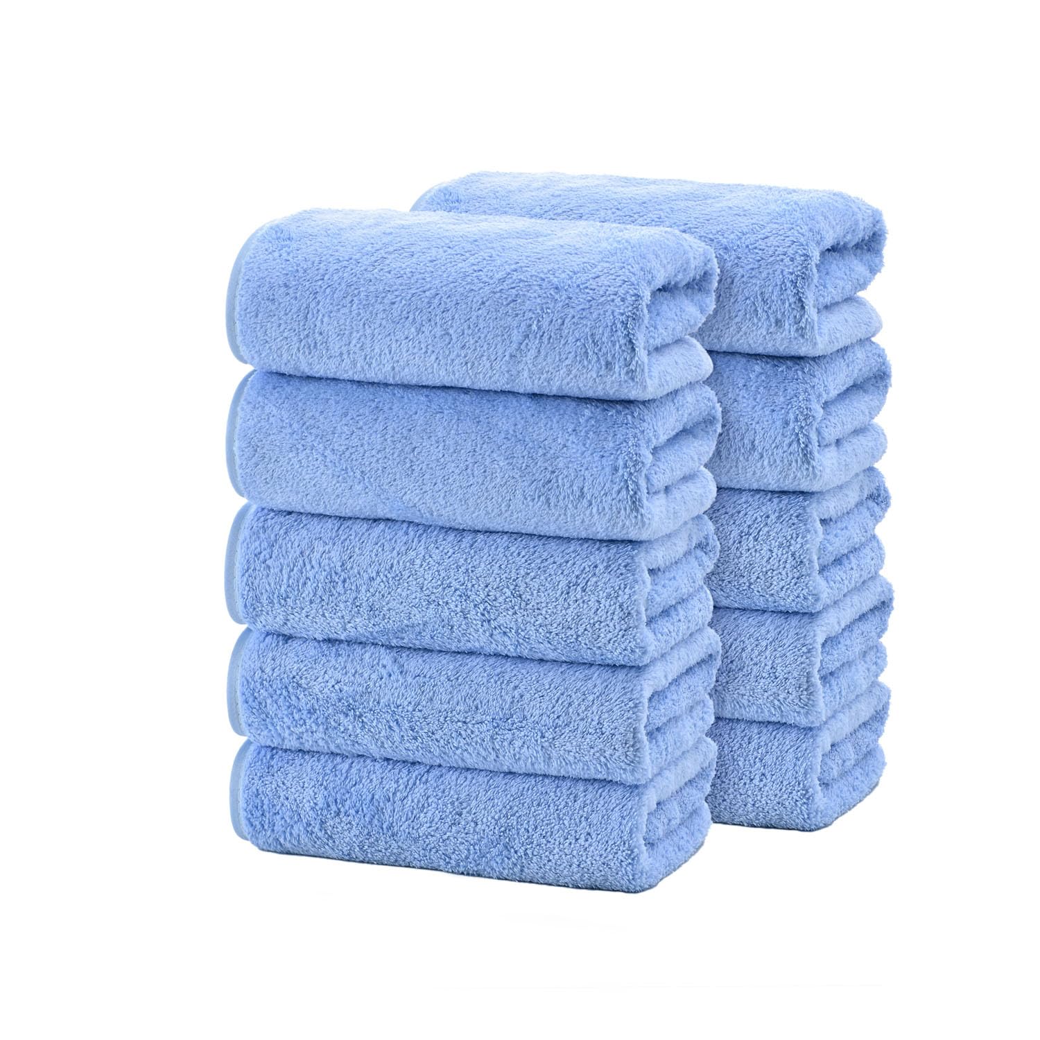 フェイスタオル マイクロファイバー タオル 10枚セット 約75×35cm 吸水 速乾 ふわふわ 肌触り 抗菌防臭 (スカイブルー)