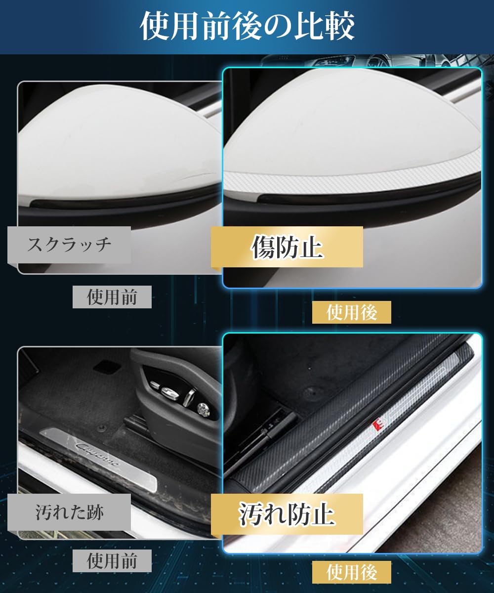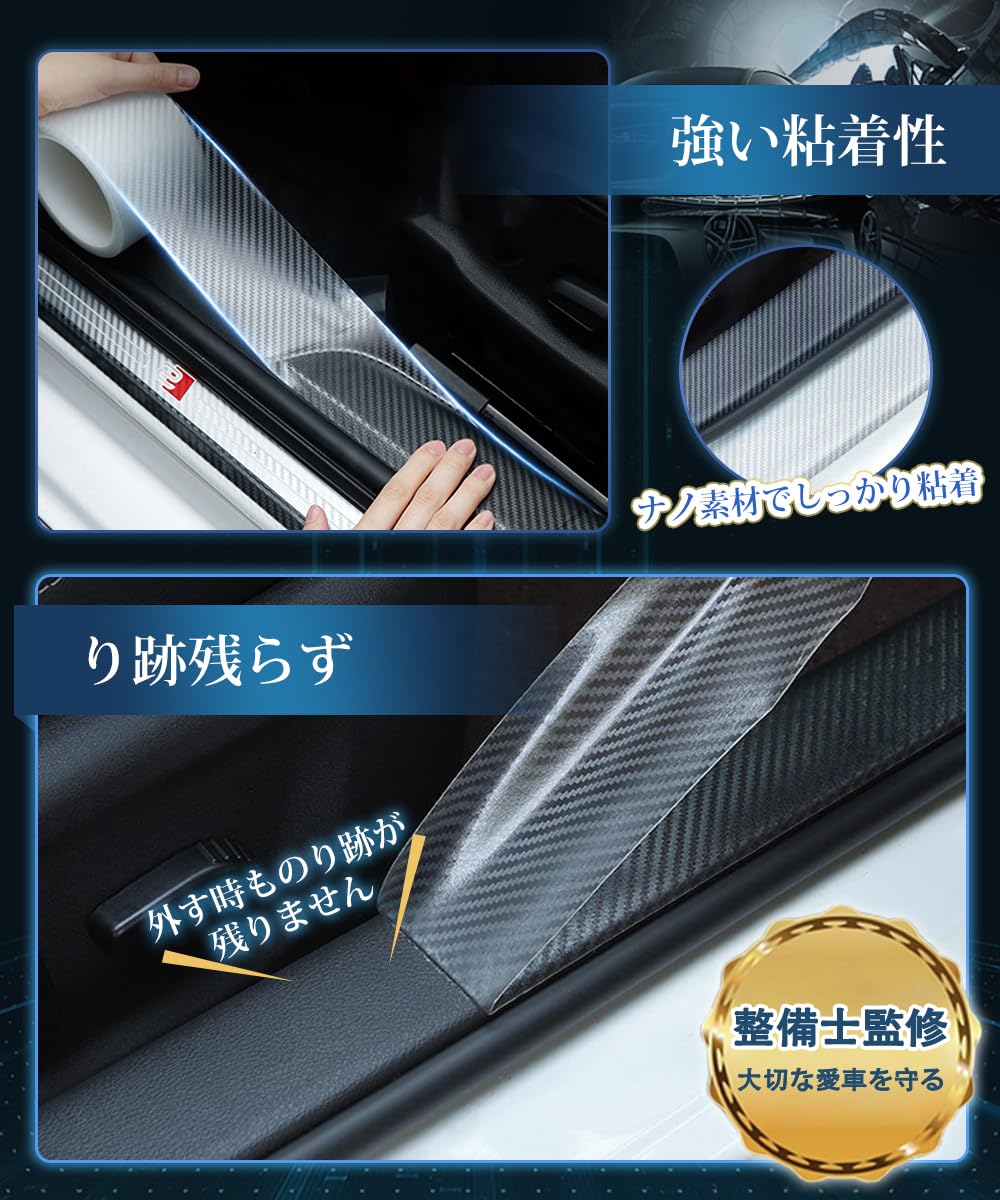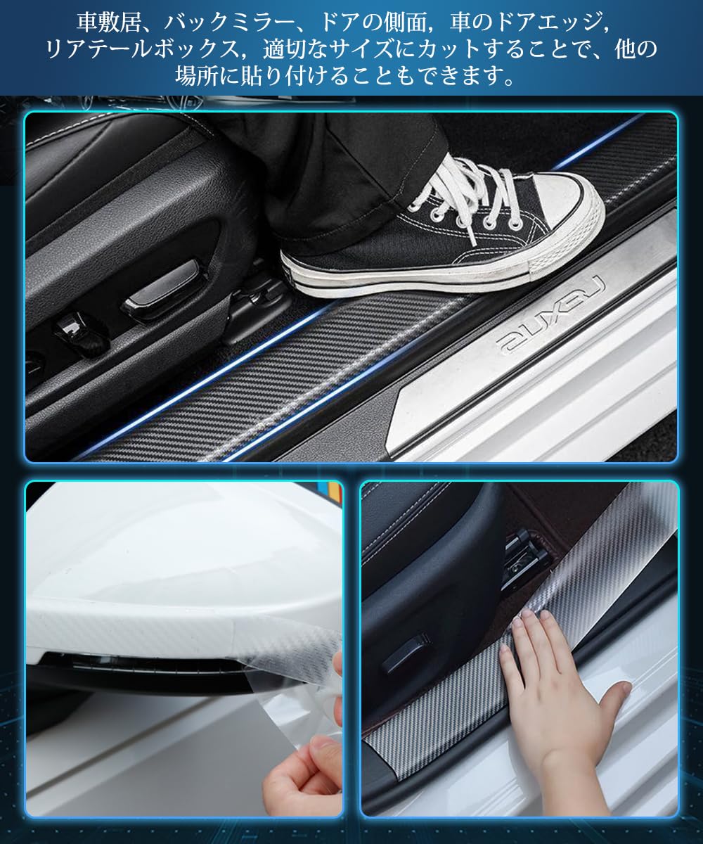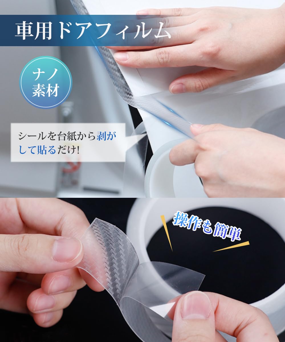 AUTOYUZU 20CM*5M 車用ドアフィルム プロテクターフィルム プロテクションフィルム ボディ保護フィルム サイドステップガード スカッフプレート バンパーガード カーボン キズ防止 テープ式 汚れ防止 汎用 簡単装着 透明ベース