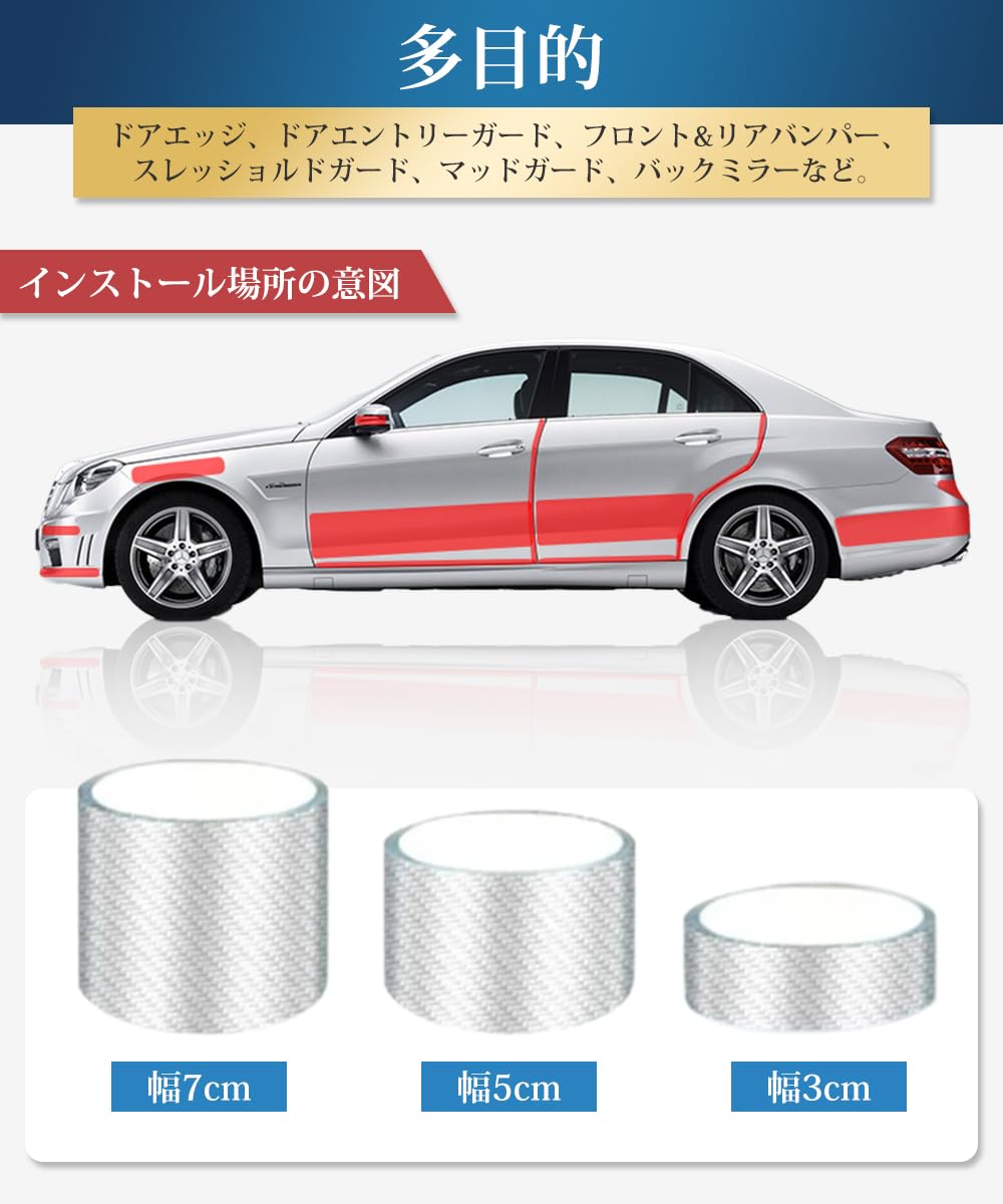 3cm*5M 車 ステッカーオートカーラッピングフィルム ステップ バンパー 車傷保護 超粘着 粘着剤付き テープ式 カーボンシート ドアエッジプロテクター