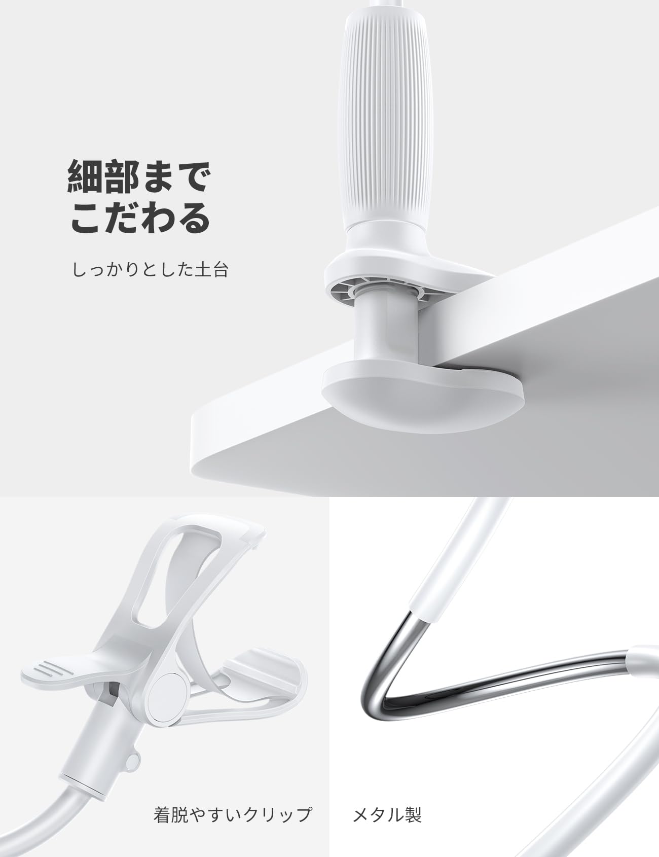 【ナイロン編み製】 Lamicall 360° 寝ながら スマホアームスタンド ベット スマホホルダー : フレキシブル アーム スタンド 携帯 すまほ けいたい 回転 ごろ寝 卓上 机 デスク アイホン アンドロイド iPhone 17e 17 Air 16 15 14 plus pro promax 13 mini 12 11 se Huawei Xperia android に対応 白