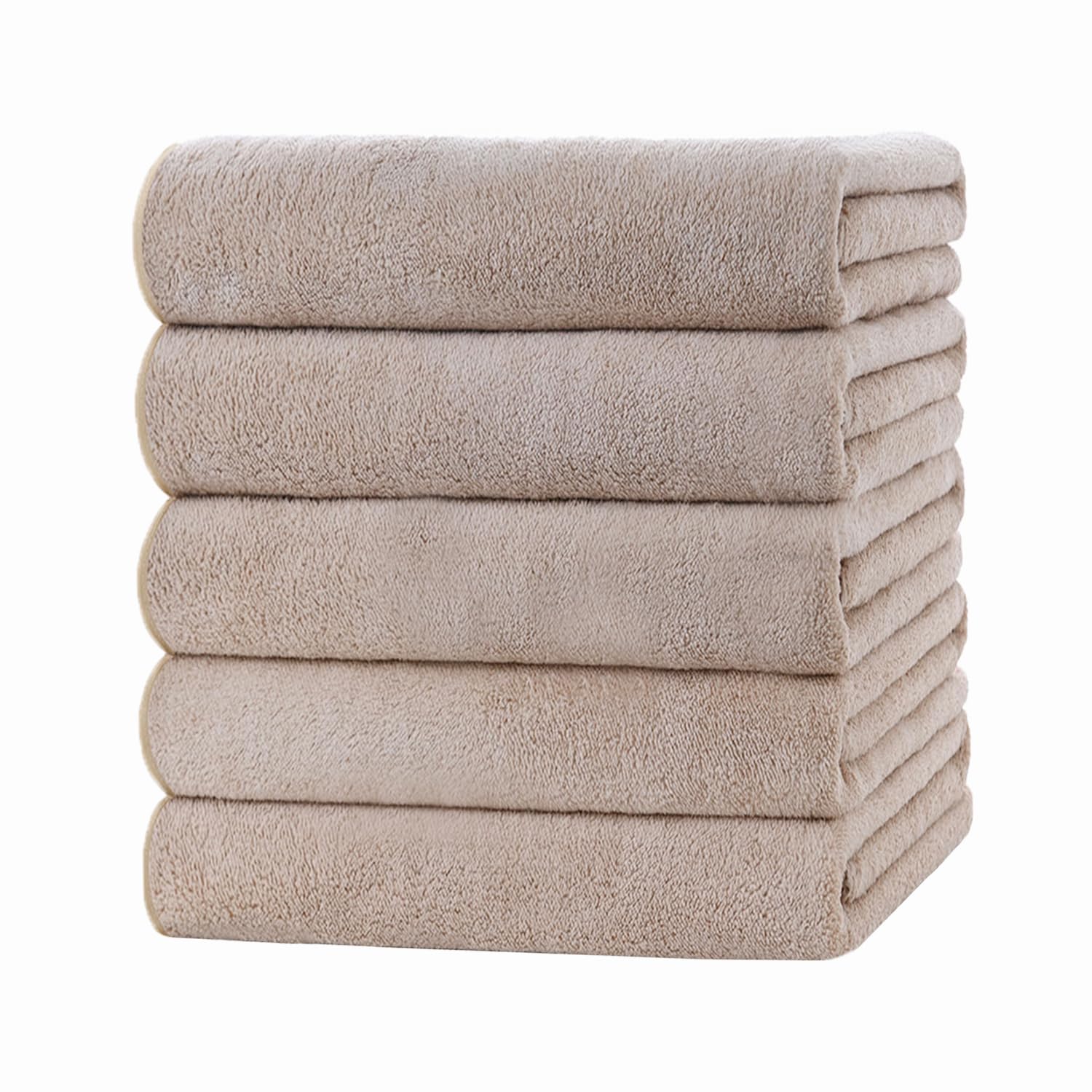 バスタオル マイクロファイバー 大判 5枚セット 約60×120cm タオル 吸水早い 柔らかい ふわふわ 肌に優しい 抗菌防臭 毛羽落ちにくい 家庭用 風呂上がり プレゼント (ベージュ)