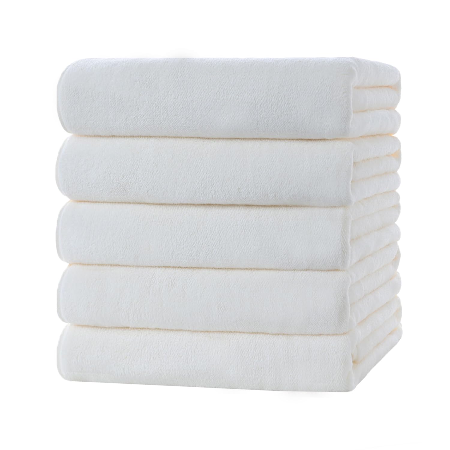 バスタオル マイクロファイバー 大判 5枚セット 約60×120cm タオル 吸水早い 柔らかい ふわふわ 肌に優しい 抗菌防臭 毛羽落ちにくい 家庭用 風呂上がり プレゼント (ホワイト)