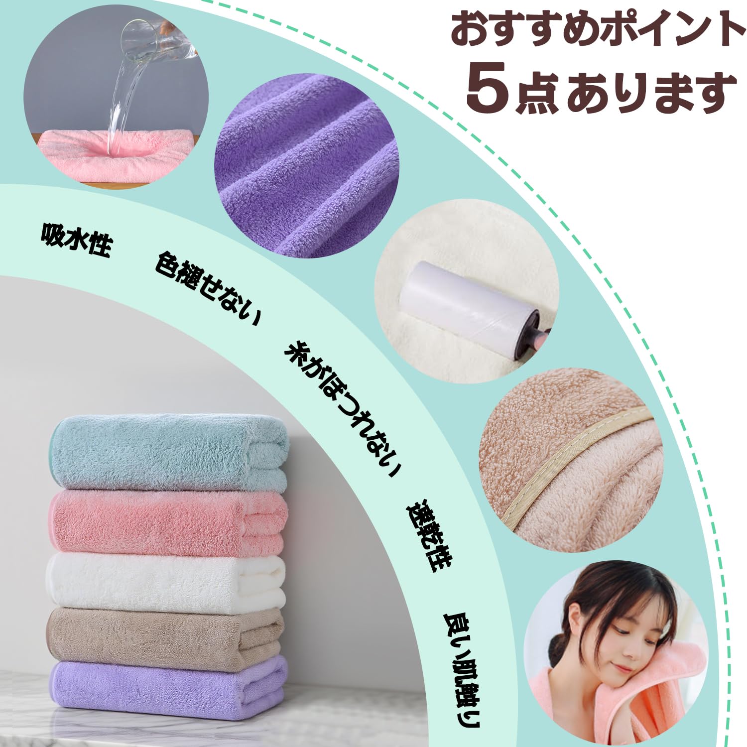 バスタオル 大判 ホテル仕様 タオル マイクロファイバー 5枚セット ふわふわ 吸水 速乾 耐久性 家庭用 サロン ジム サウナ バス用品 業務用 (5色)