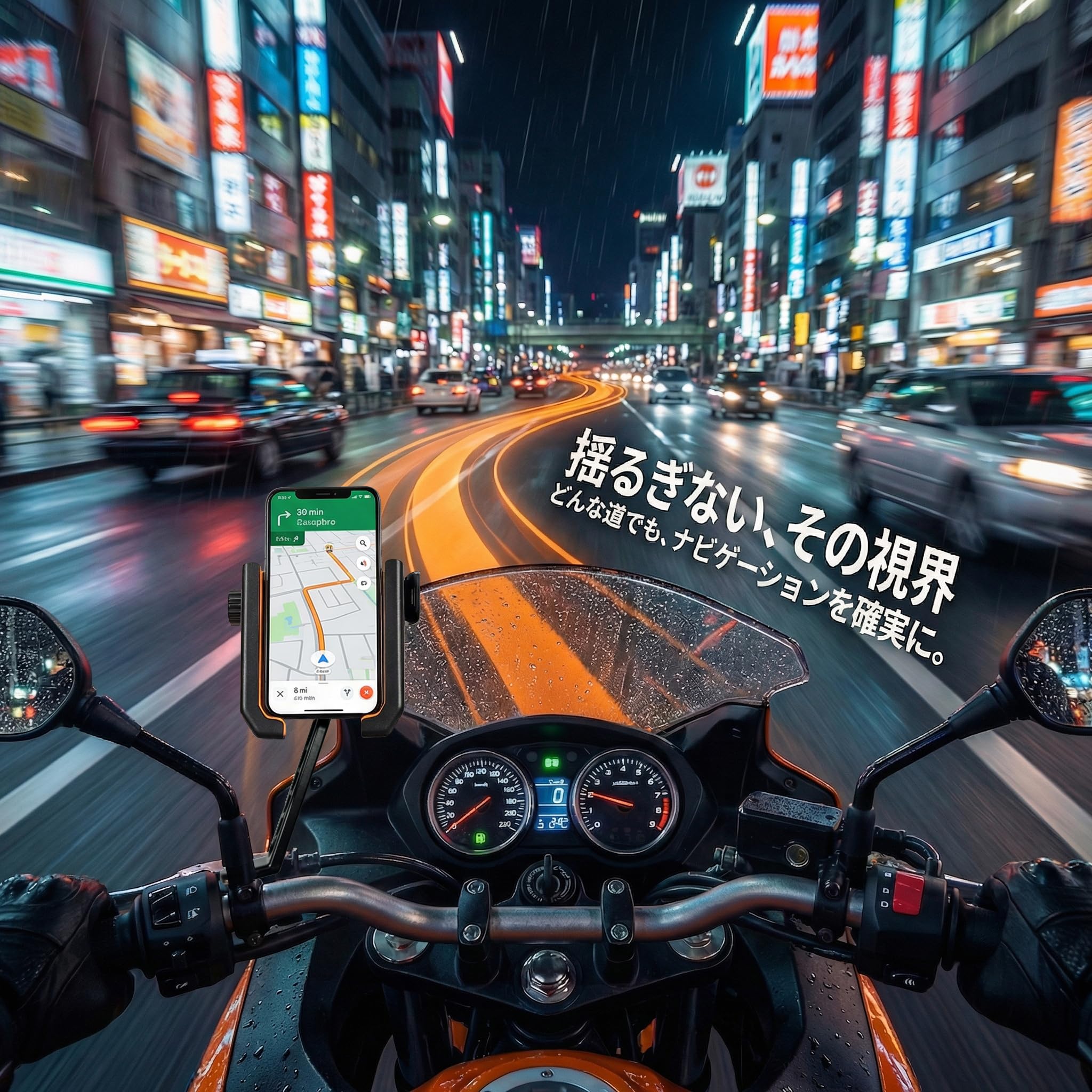 バイク用 バックミラー型 スマホホルダーは、バイクユーザーのニーズに合わせて設計された実用的なアクセサリーで、バックミラーに直接取り付ける仕様で、安装が簡単かつ固定力が強力です。 取り付け方法は非常にシンプルで、付属のレンチ工具を使用してバイクのバックミラーのねじを緩めて取り外し、固定ベースの支持棒を時計回りにナットを締めるだけで、しっかりと固定することができます。初心者でも手順に従えば、数分で完成できます。 初回使用時は、右側のロックを閉じた後、調整ダイヤルでスマホの幅に合わせて調整し、スマホを装着してダイヤルを締め直すだけ。以降は右側のロックを操作するだけで、スマホの着脱をワンタッチで行え、運転中の手間を大幅に省けます。 360°無段階回転機能により、縦向き・横向きを含む任意の角度に自由に調整でき、ナビゲーション確認、通話、音楽操作など、各シーンに合わせて最適な視認角度を選べます。クランプ内径は75mm~95mmに対応し、4.7インチ以上のほぼ全てのスマホ機種に対応しており、カメラ部分を遮らない設計で、走行中の撮影も自由自在です。 製品サイズは9.5×9×15cmのコンパクト設計で、バイクのデザインを損なうことなく、安定性と利便性を両立しています。バイク通勤・通学の方、配達業務の方、オートバイ愛好者、アウトドア活動者など、幅広いバイクユーザーにおすすめの、バイクライフを豊かにする必需品です。