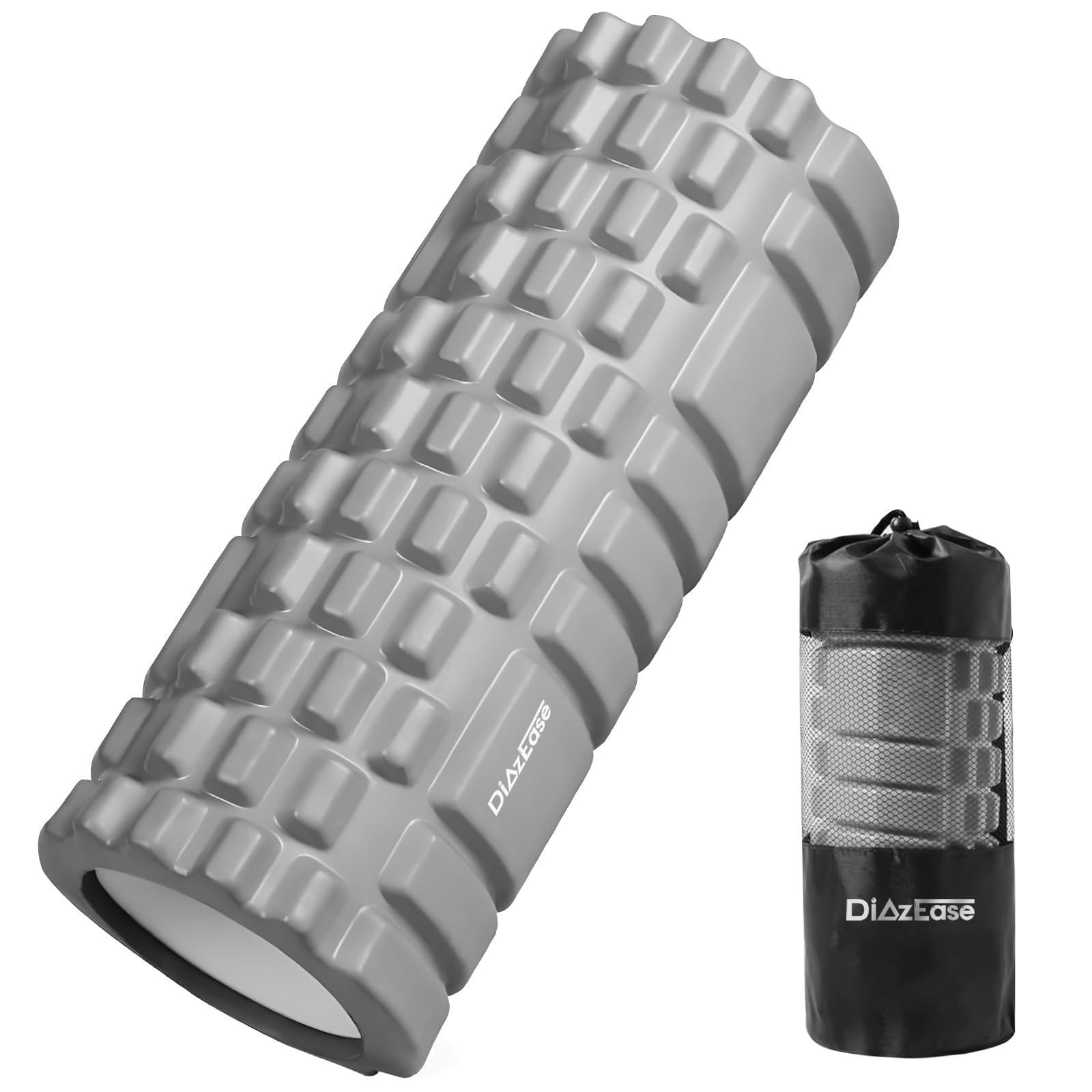 DiazEase フォームローラー 収納バッグ 300KG耐荷重 グリッドフォームローラー ヨガローラー ヨガポール ト レーニングスポーツ 割れない 3種類凹凸の設計 ヨガポール EVA素材 筋肉ほぐし フィットネス ストレッチ器具