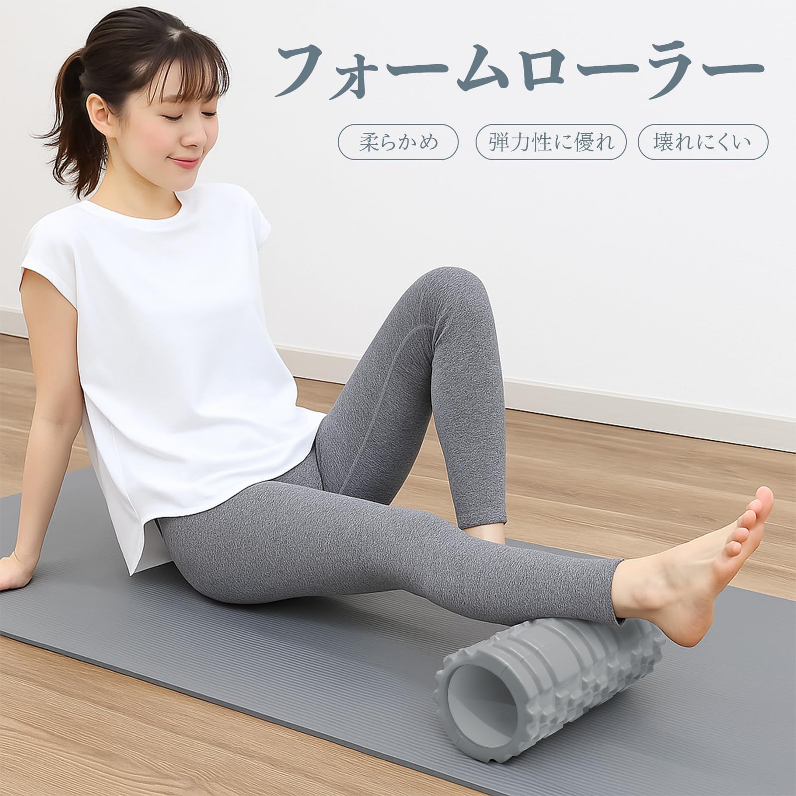 BTtime フォームローラー グリッドフォームローラー フィットネス ストレッチ器具 収納バッグ付き ヨガポール トレーニング スポーツ (グレー)