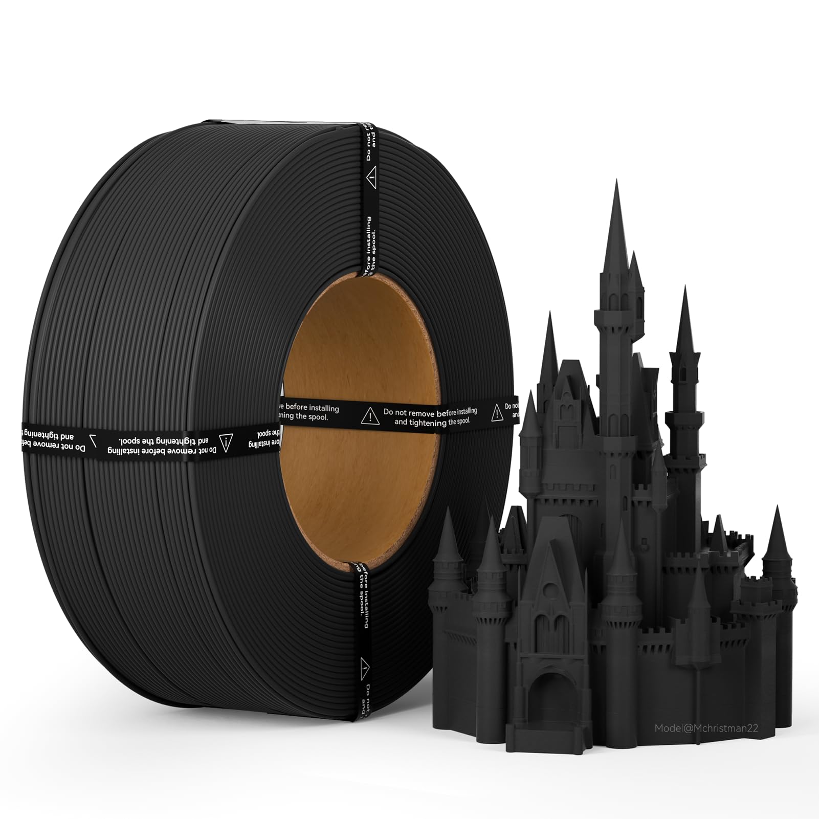 マットPLA 補充フィラメント 1.75mm ブラック 1kg スプールレス設計 寸法精度±0.02mm 繰り返し使用可能スプール対応 3Dプリンター用 黒