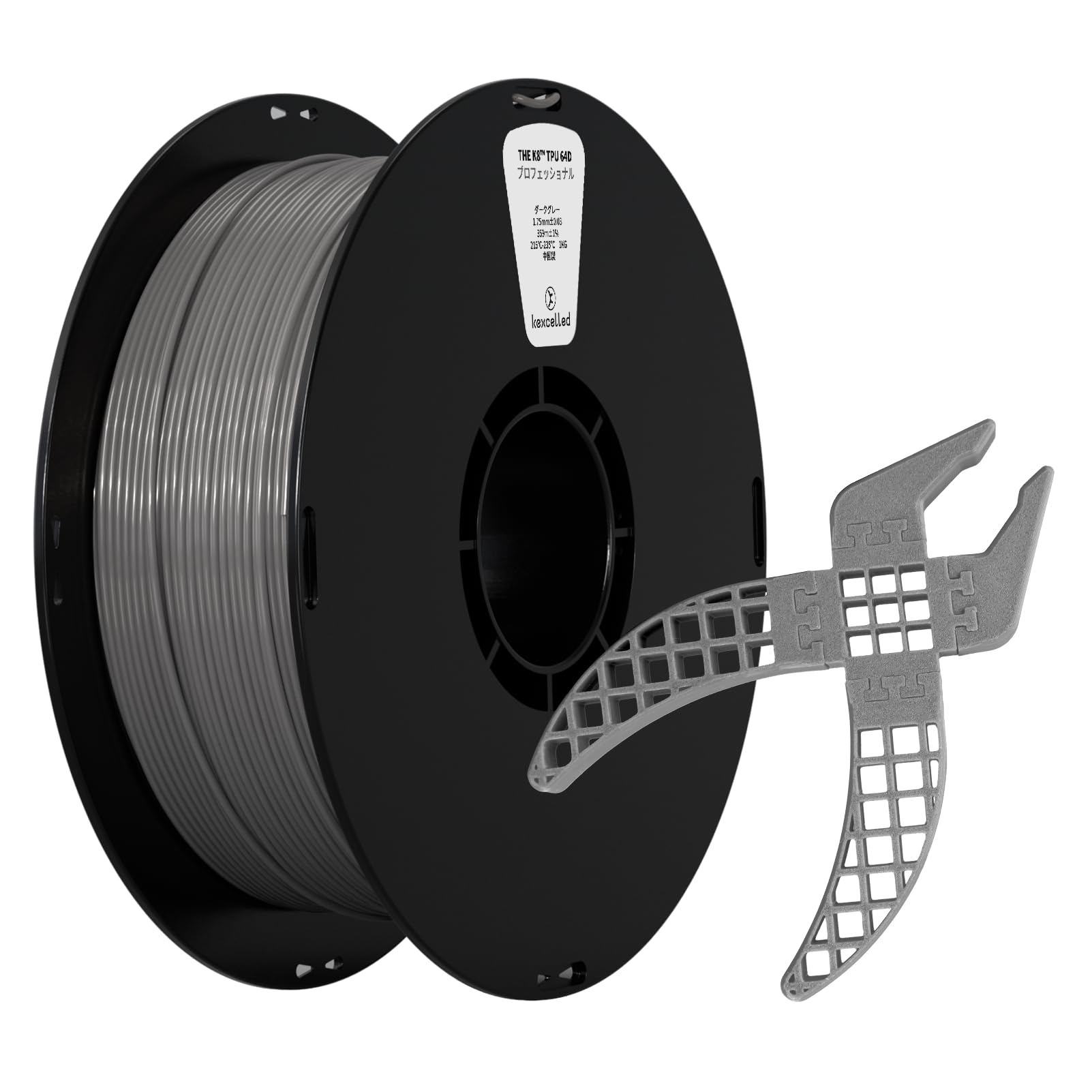 kexcelled 3Dプリンター TPUフィラメント 64D 1.75mm径 正味量1KG(2.2LB) 寸法精度+/-0.05mm 柔軟性も耐久性も優れる新型素材,ダークグレー