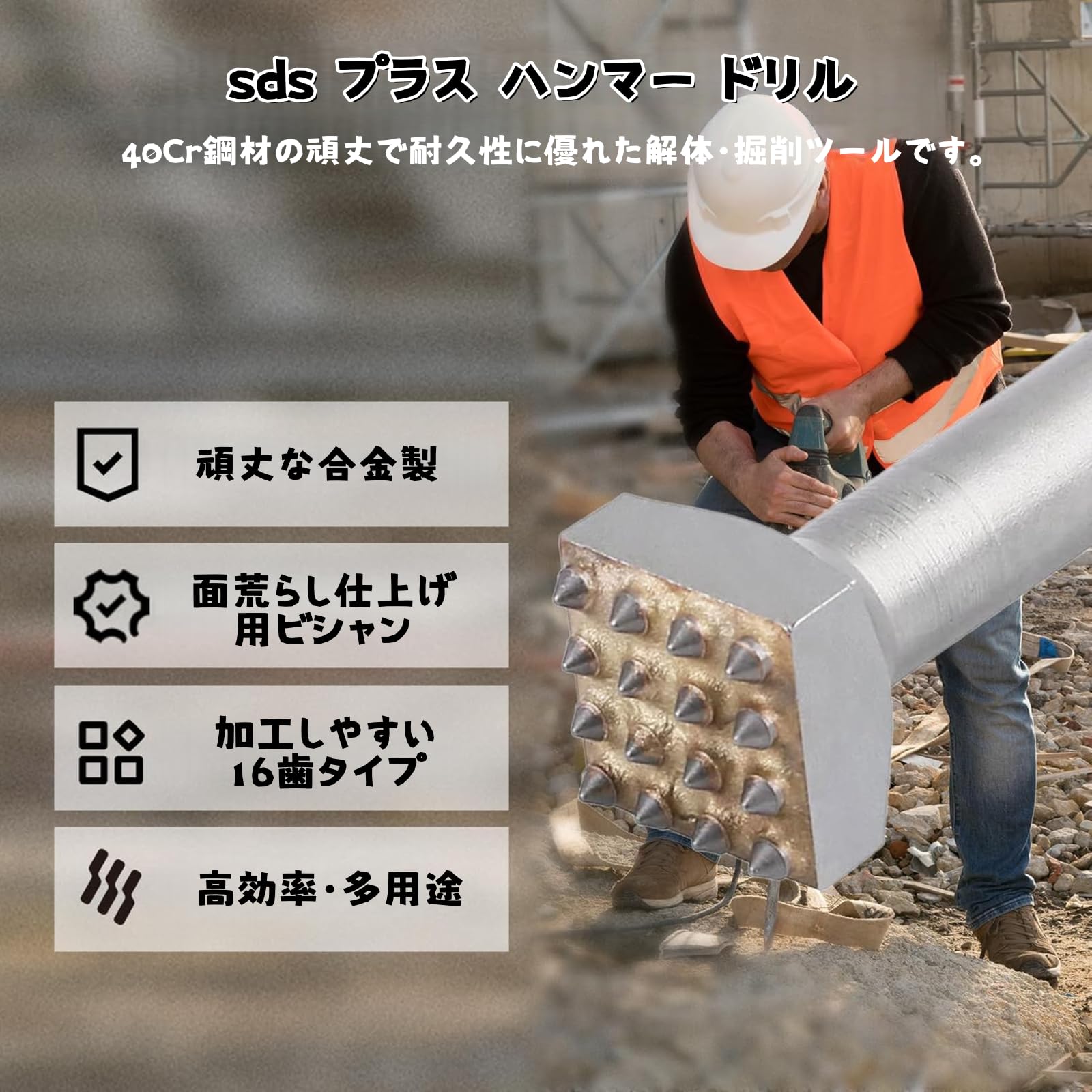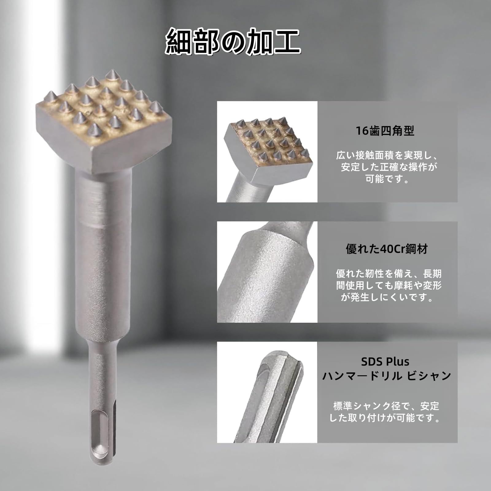SDS Plus 電動ハンマー チゼル 電動フラワー ハンマードリル SDS ドリル 解体ソケット 工具 ビット電動 フラワーハンマー 先端 40cr スチール 溝 チゼル コンクリート用