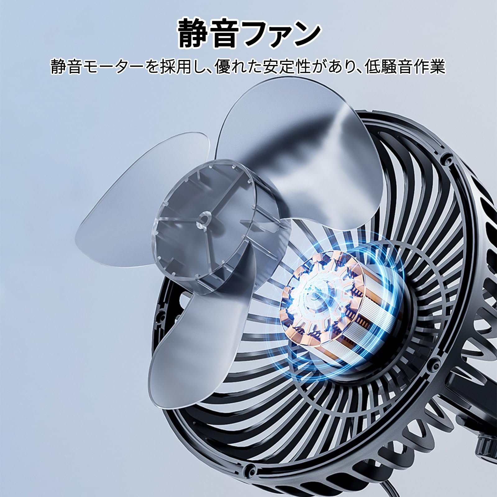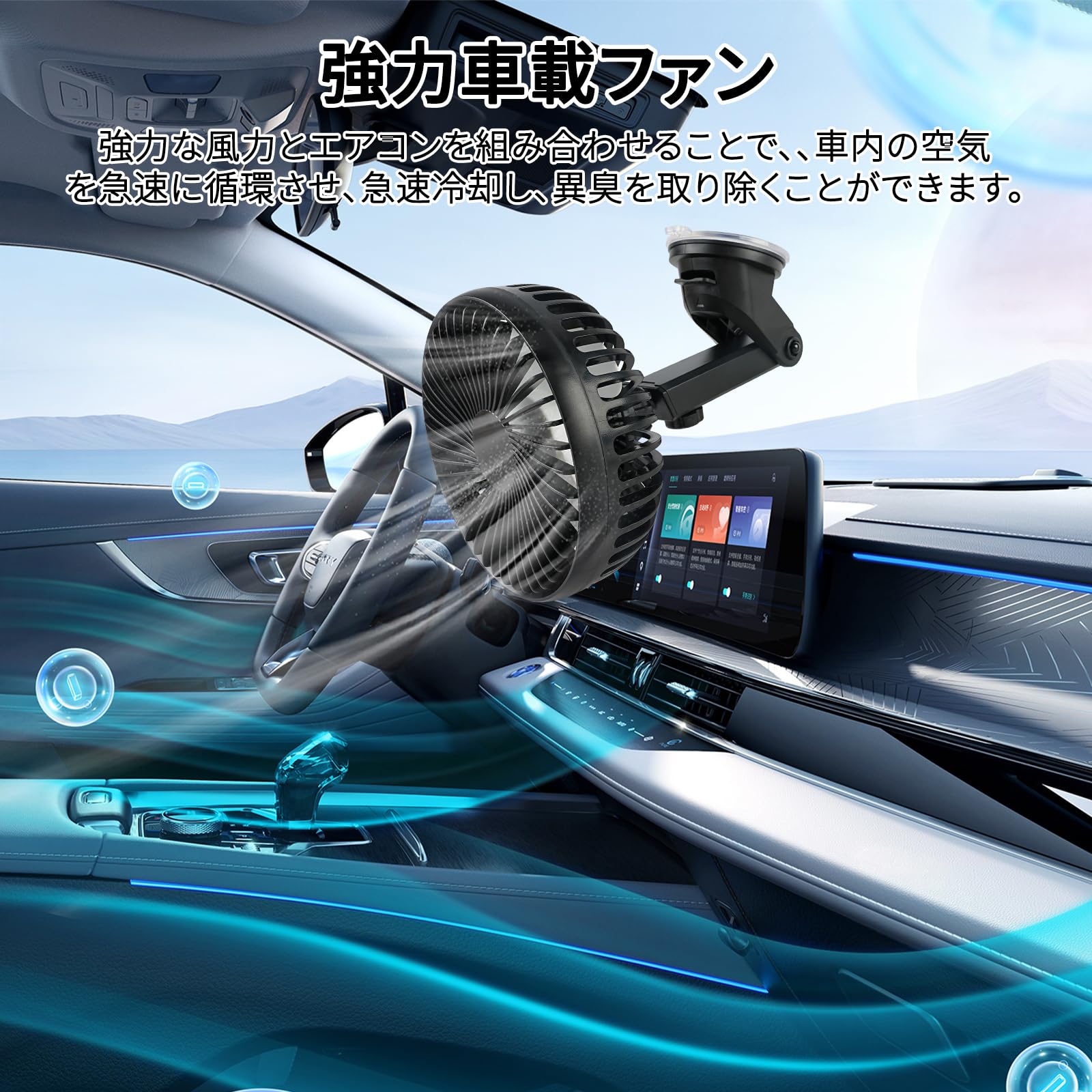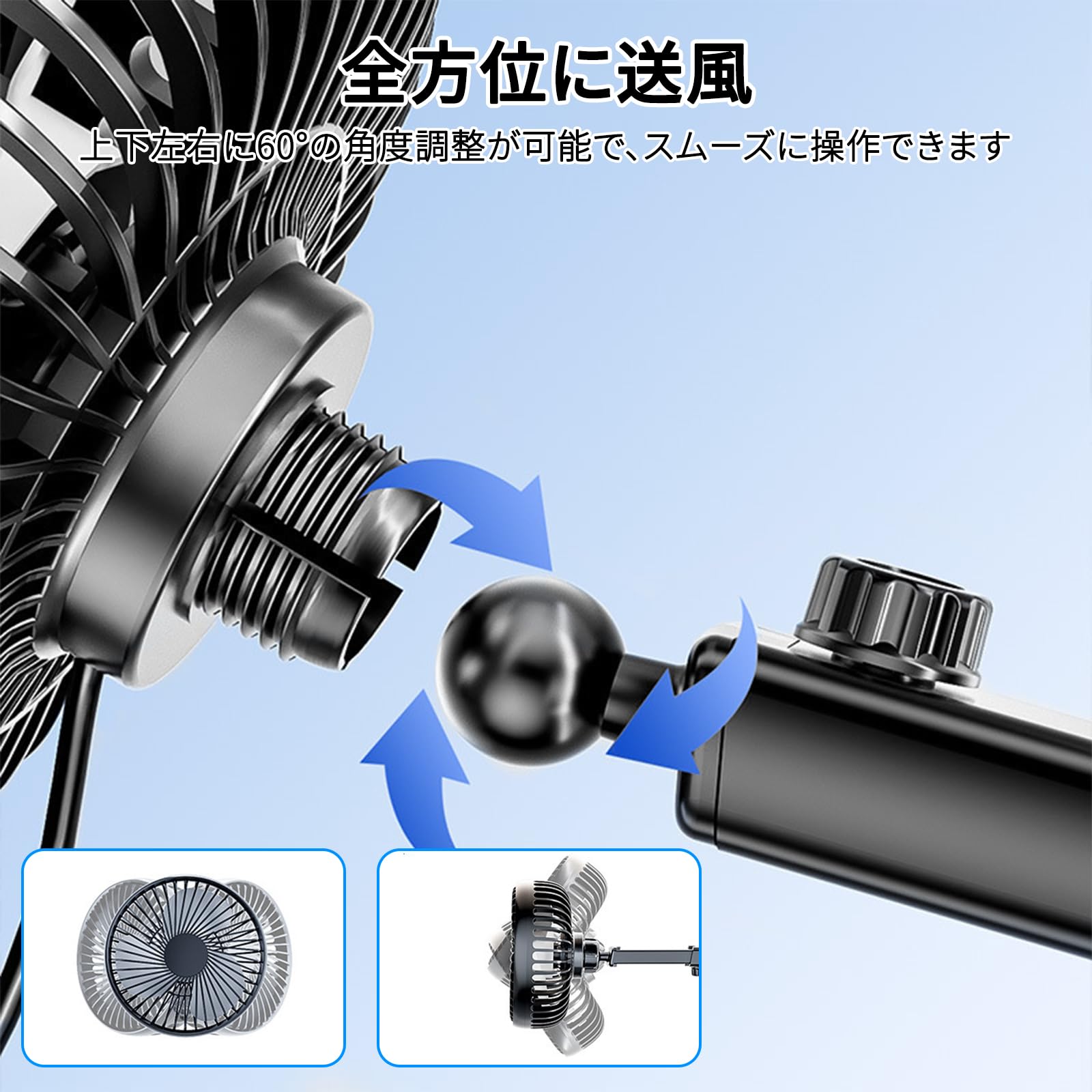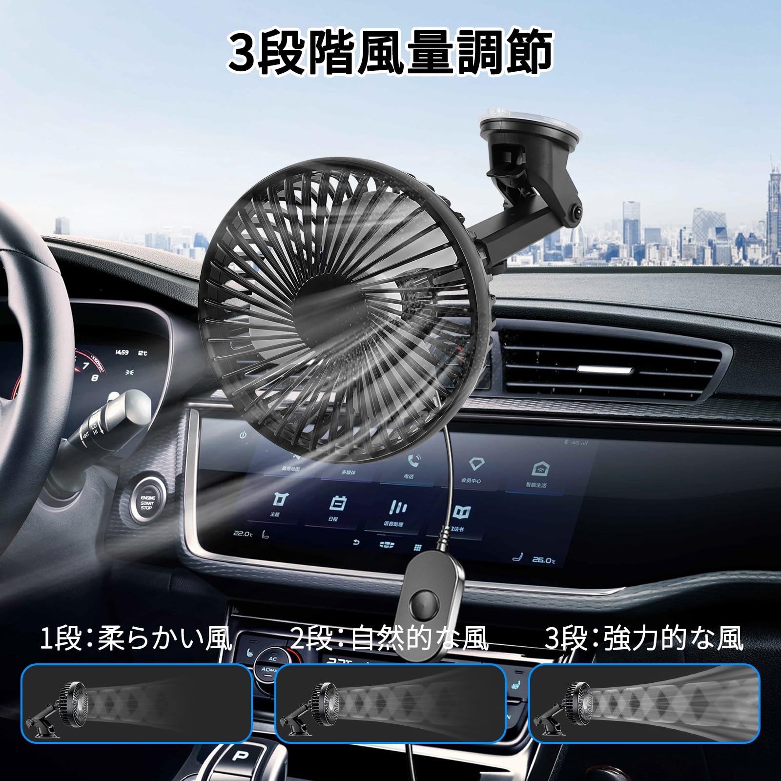 車載扇風機 車用扇風機 車載ファン 電動ファン 低騒音 3段階風量調節 角度調整可能 リアフロント両用 汎用タイプ 夏対策 USB 12V/24V 車用 後部座席 日本語マニュアル付