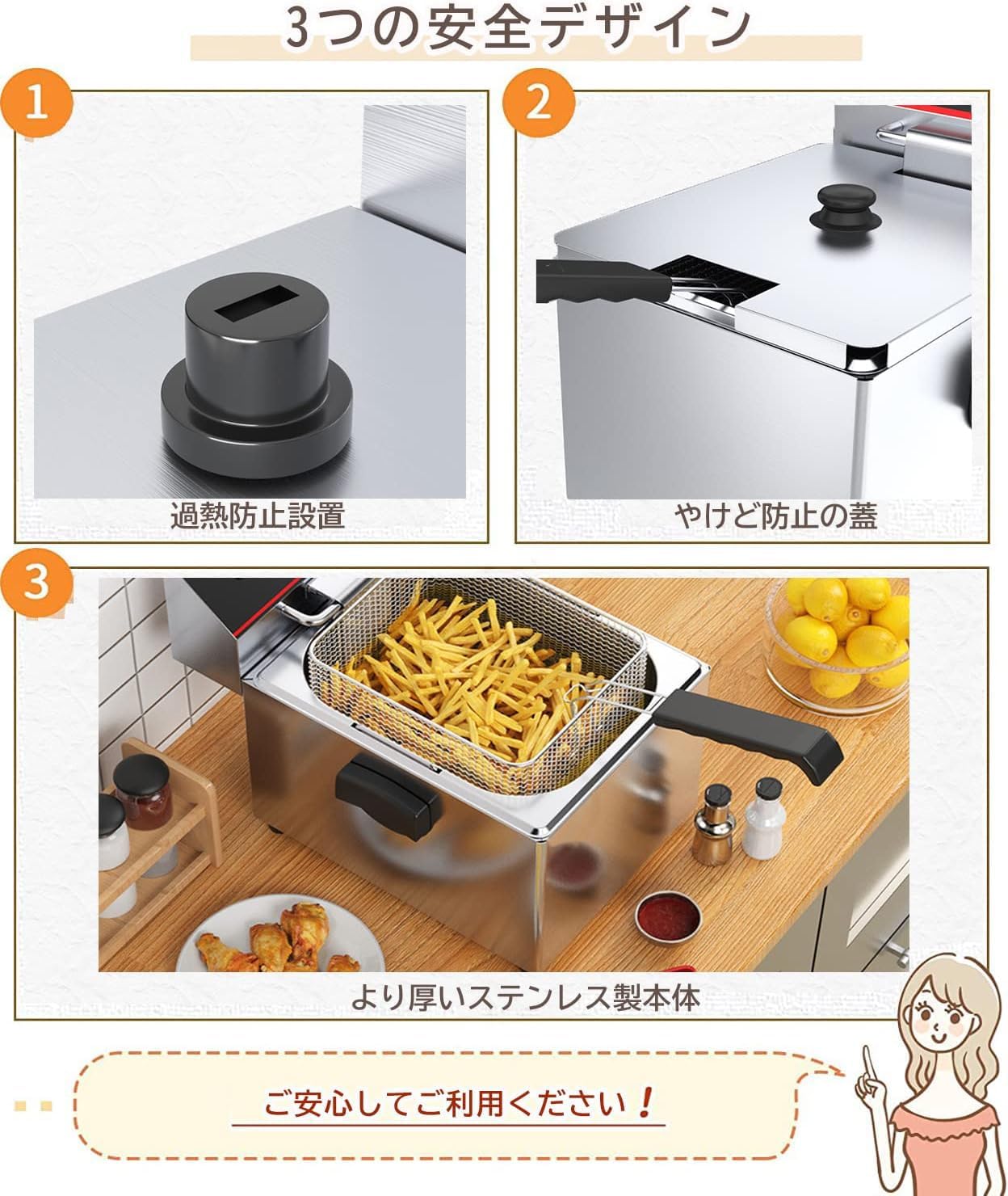 電気フライヤー 8L 卓上フライヤー 揚げ物器 ミニフライヤー 業務用 家庭用 油揚げ 唐揚げ 天ぷら 一槽式 1400W 60-200℃ 日本語の説明書付き