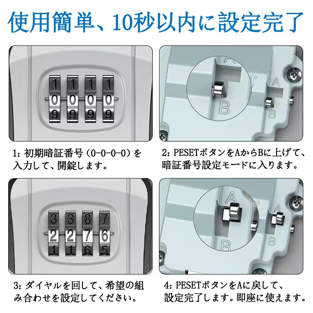 セキュリティ キーボックス 壁掛け 鍵 ボックス 南京錠 ロック ポケット ダイヤルロック 4桁ダイヤル式 小物 キー収納 防水 大容量 インテリア オシャレ 小型 暗証番号 オフィス アパート マンション 事務所 車 玄関 倉庫 会社 家庭 工事現場 現地対応 鍵の保管 防犯 盗難防止 説明書付き