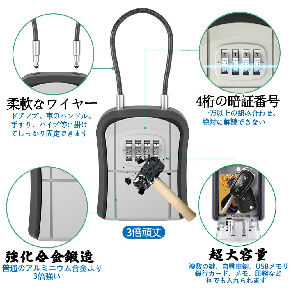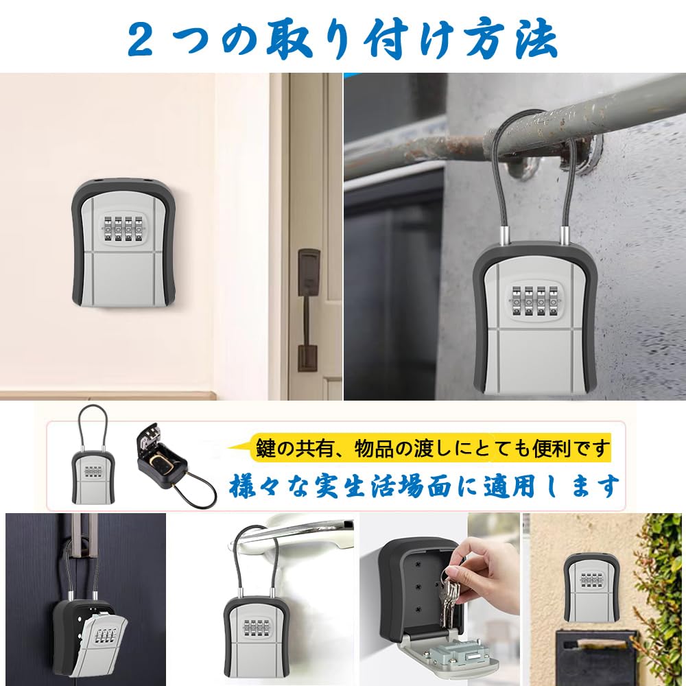キーボックス 鍵共有ボックス 鍵収納ボックス ワイヤー式 壁掛け式 ダイヤル式 4桁暗証番号 キー収納 南京錠 防犯性 鍵共有 玄関 倉庫 工事不要 【文君の店】 (ワイヤー式, グレー)