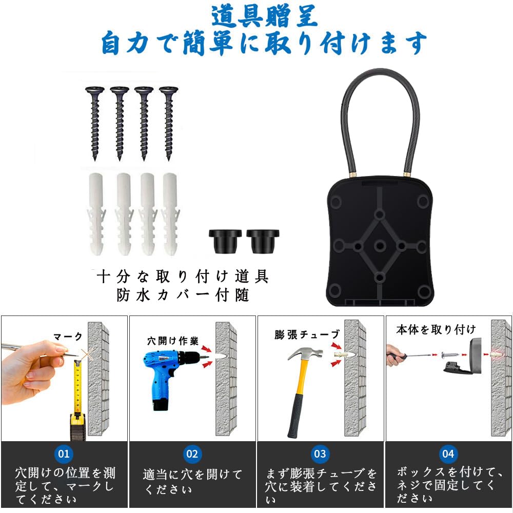 BenRich キーボックス 壁掛け 屋外 防水 12桁ダイヤル式 プッシュボタン キーセーフボックス 大容量 盗難防止 に最適 車 アパート オフィス 倉庫 建設現場用 日本語マニュアル付き