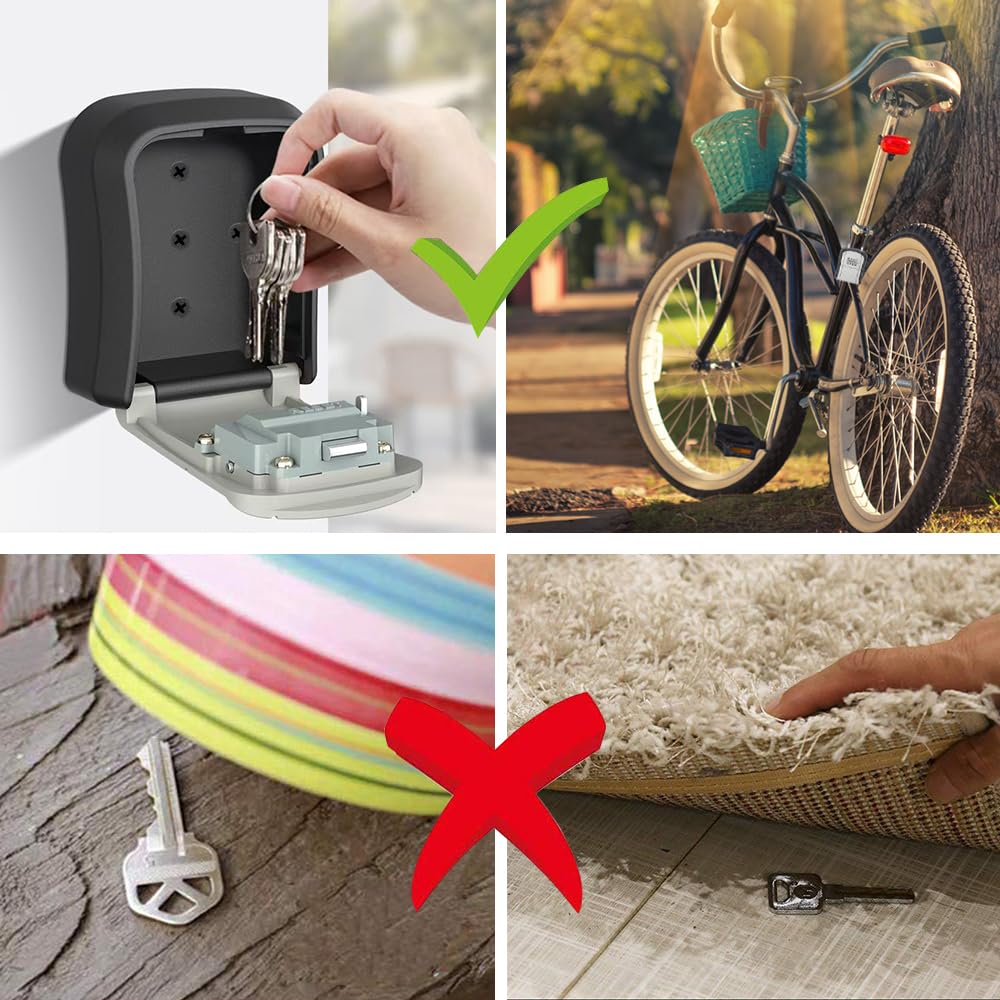 ZHEGE セキュリティ キーボックス ダイヤル式 鍵収納ボックス 大容量 壁掛け キーボックス 屋外 盗難防止(ニューブラック)