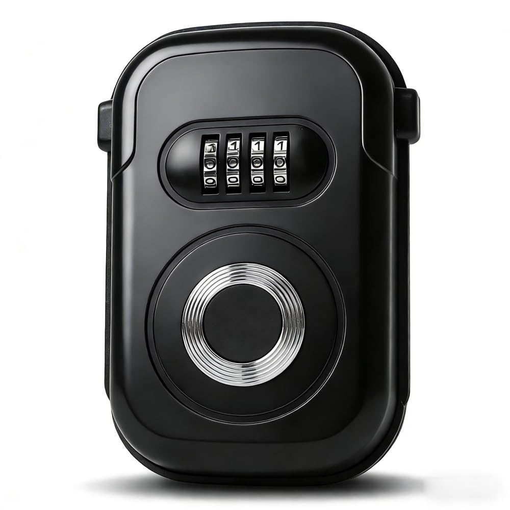 NAGE キーボックス 屋外 4桁 暗証番号 キーロック ダイヤル式 防水 吊り下げ スペアキーボックス大容量 防犯 盗難防止 倉庫 工事用 (U型、ブラック)