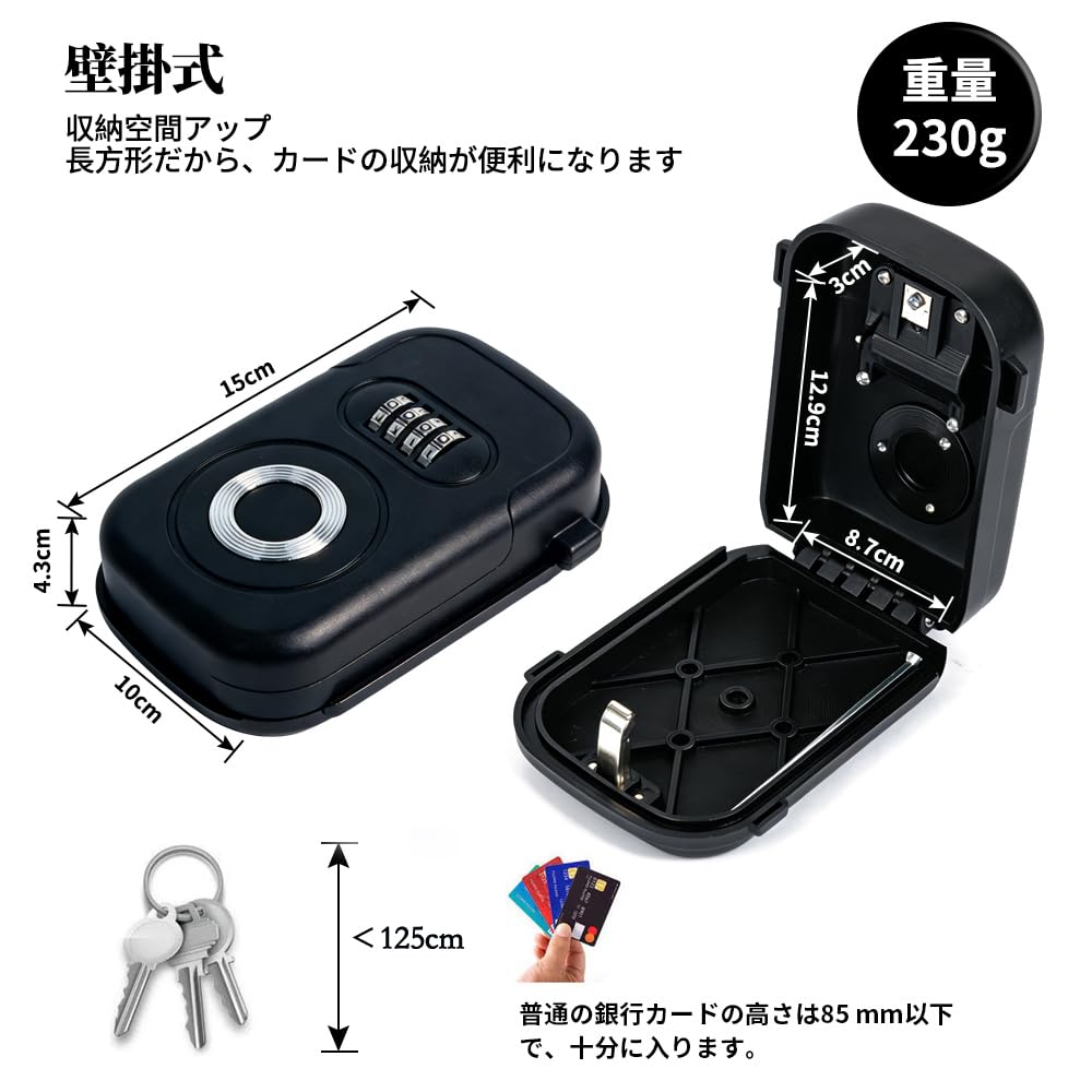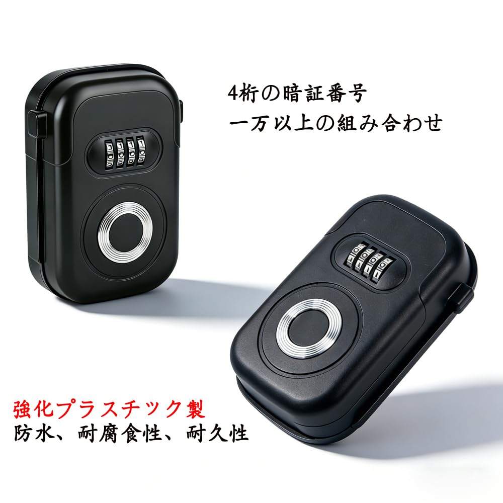 キーボックス 鍵共有ボックス 鍵収納ボックス 強化プラスチック製 壁掛け式 ダイヤル式 4桁暗証番号 キー収納 南京錠 防犯性 鍵共有 玄関 倉庫 工事不要 【文君の店】 (ブラック)