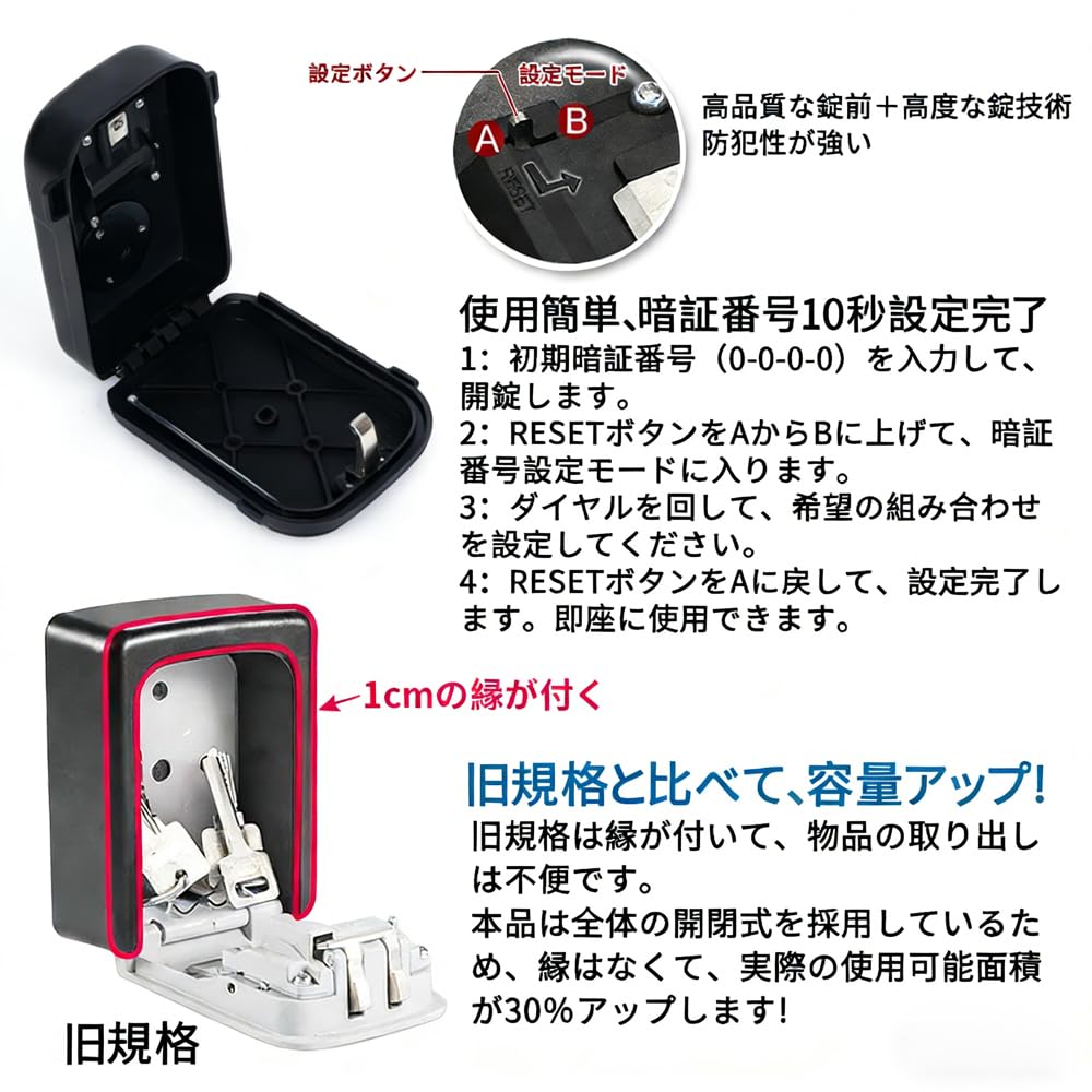 ZHEGE キーボックス 暗証番号 鍵 収納ボックス 4桁ダイヤル式 大容量 防犯 盗難防止 日本語説明書付き
