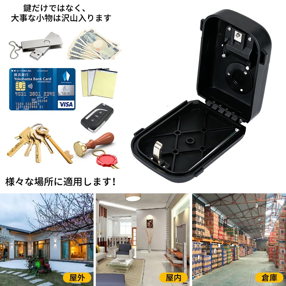 南京錠・C-Timvasion 金庫 4桁暗証番号ダイヤル式 キーボックス キー収納 鍵の保管ボックス、 鍵の保管 受け渡し 防犯 盗難防止 壁掛け鍵収納ボックス、住宅展示場・工事現場・マンション・会社・倉庫などに適用「日本説明書付き」