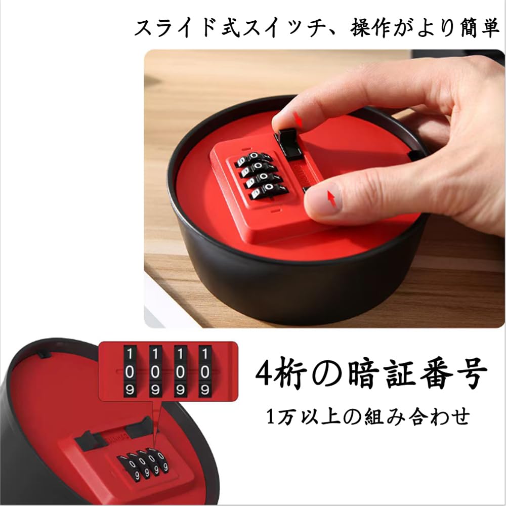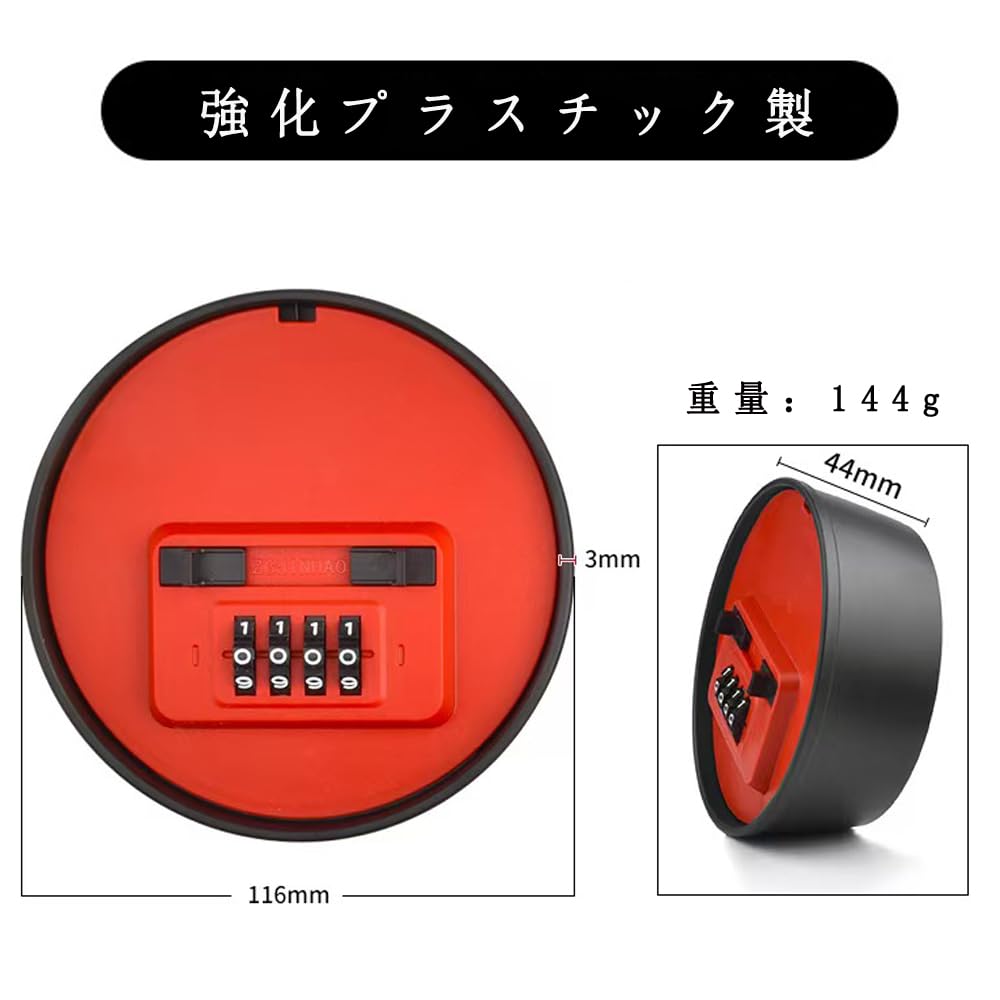 キーボックス 鍵共有ボックス 鍵収納ボックス 強化プラスチック製 壁掛け式 ダイヤル式 4桁暗証番号 キー収納 南京錠 防犯性 鍵共有 玄関 倉庫 工事不要 (レッド)
