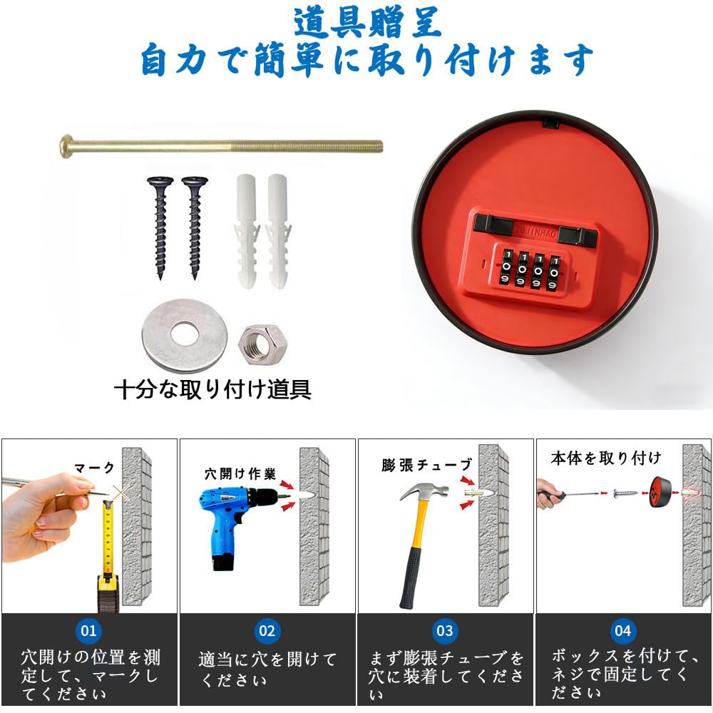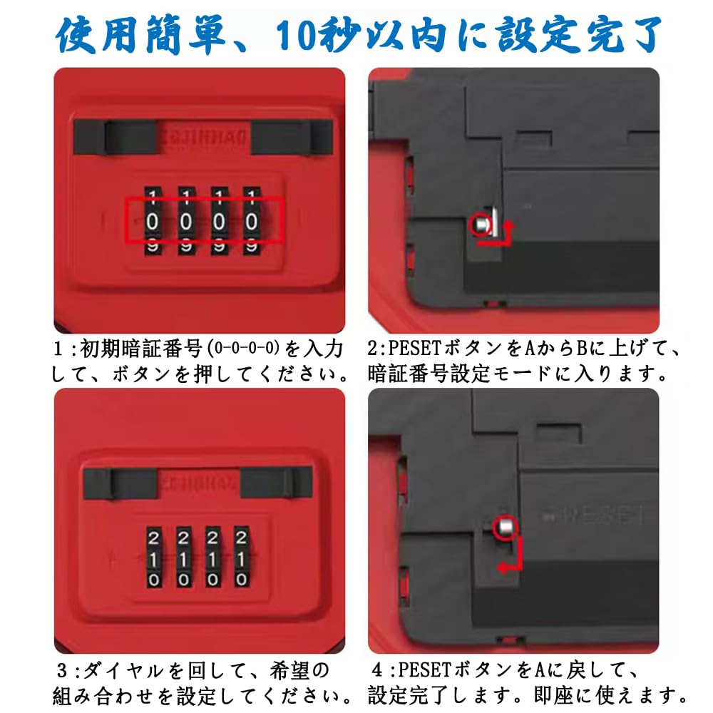 XXL 大容量キーボックス・C-Timvasion 金庫 4桁暗証番号ダイヤル式 キー収納 鍵の保管ボックス、 印鑑や鍵の保管 受け渡し 防犯 盗難防止 壁掛け鍵収納ボックス、住宅展示場・工事現場・マンション・会社・倉庫などに適用「日本語説明書」