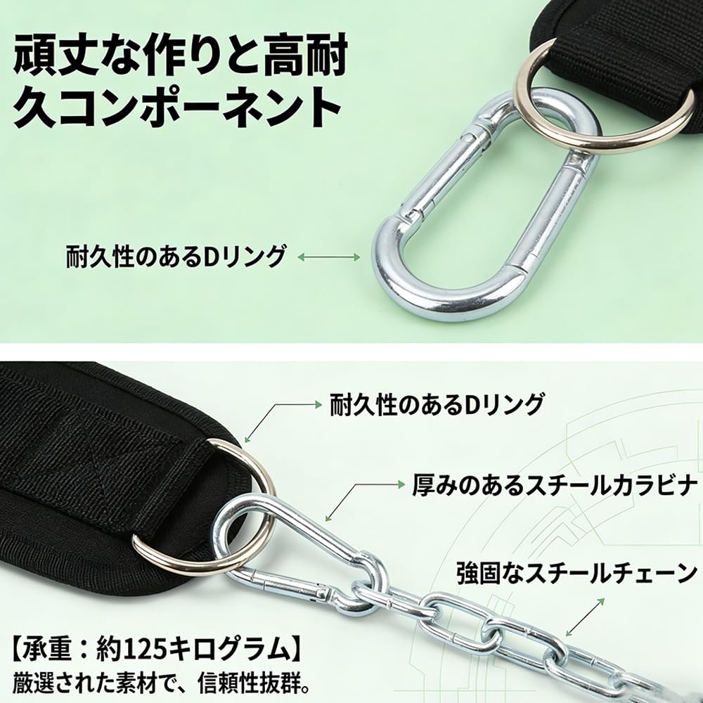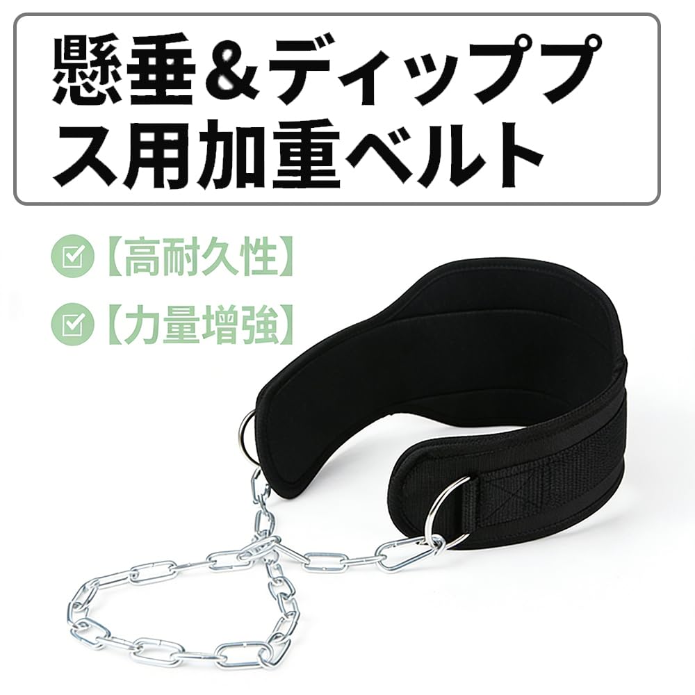 DYNAVERT 加重ベルト リフティングベルト 負荷重125kg ディプスベルト ナイロン製 耐久性 丈夫で使いやすい スチールチェーン付き 自重トレーニング