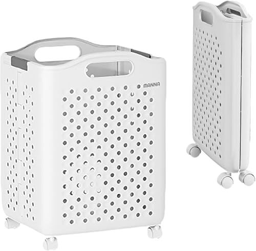 TECHMILLY 洗濯かご 折りたたみ ランドリー バスケット 大容量 軽量 脱衣カゴ スリム 持ち手付き 洗濯物入れ 省スペース プラスチック 洗濯籠 家族の衣類、タオル、おもちゃに適用、洗面所 お風呂 ランドリー収納 幅41×奥行31.6×高さ36cm 43L グレー