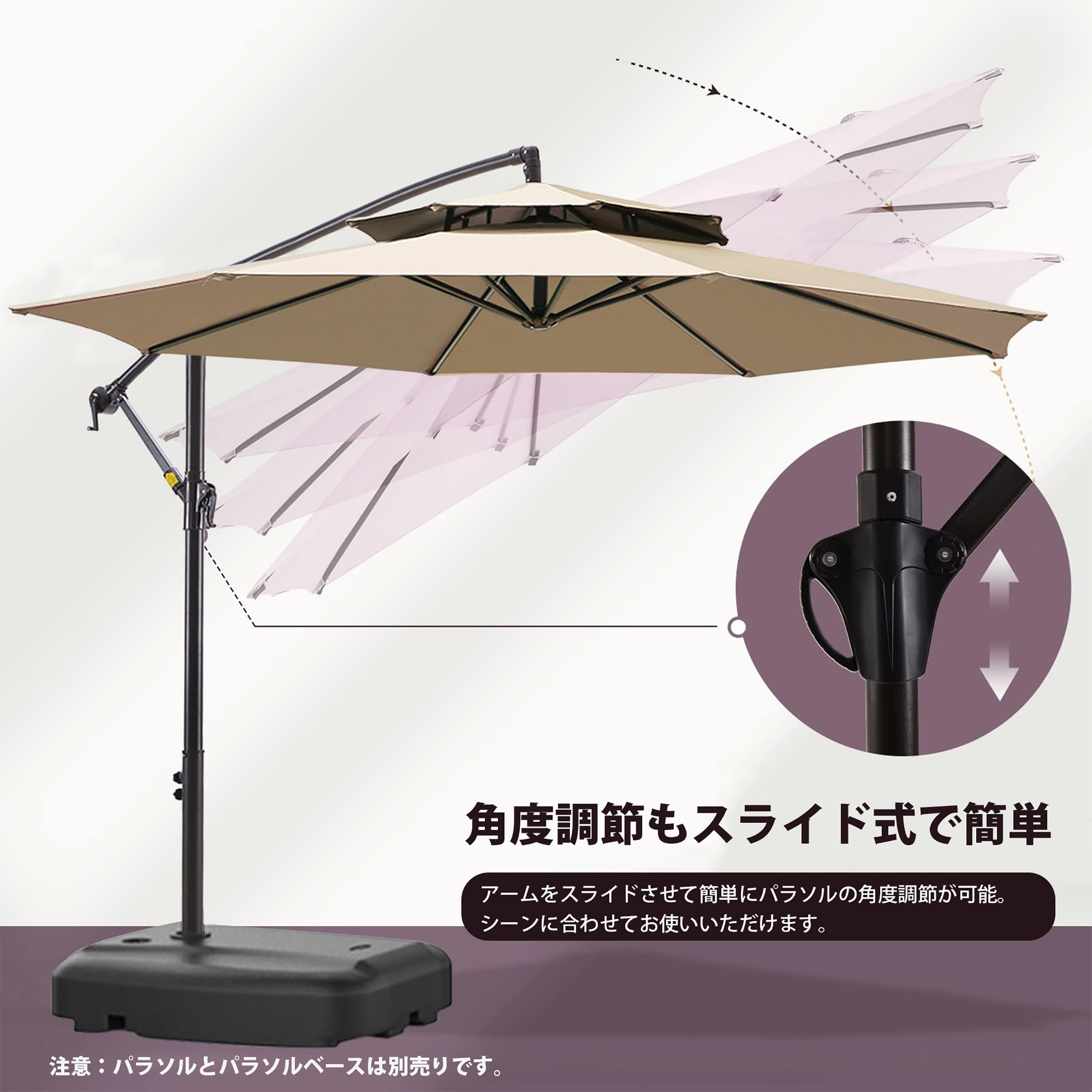 ViCoopZim パラソル ガーデンパラソル 大型 風に強い (約)直径300cm ベランダ ハンギングパラソル UVカット 撥水 角度調整 モダン おしゃれ 日除け パラソル 屋外・庭・バルコニー・ウッドデッキ ・カフェ・テラス・四角 などに適しています パラソルカバー付き ガーデンパラソルカバー (オフホワイト)