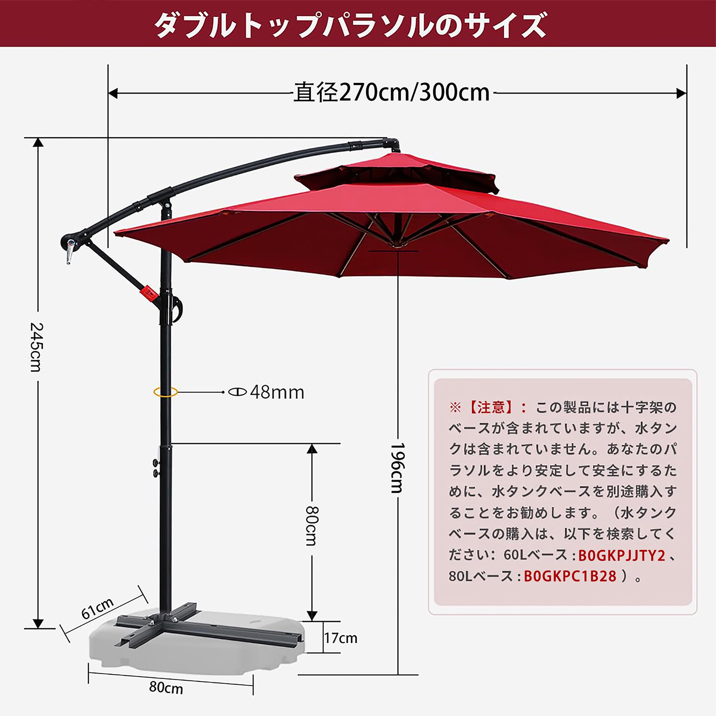 詳細:Double Canopy Diameter 270cm - Burgundy