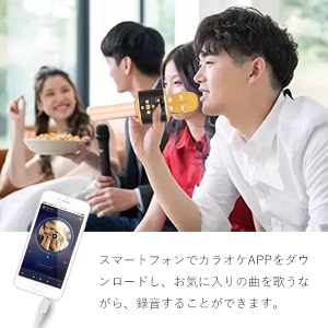 スマートフォンでカラオケAPPをダウンロードし、お気に入りの曲を歌うながら、録音することができます。