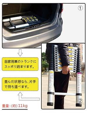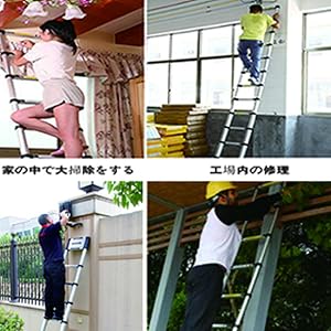 ご使用中問題がある時、いつでも気軽にメールで弊社と連絡してください。弊社は直ぐ対応致します。 専門的なアフターサービスマンが居て、24時間内にメールを迅速に返事します。 プロののメーカー保証、日本語説明書付きのスーパーラダー 。 パッケージ内容: 1伸縮自在 室内室外両用な梯子(3.8m) 1*日本語取扱説明書 1*12ヶ月のサポート。 ご購入とご利用ありがとうございます。