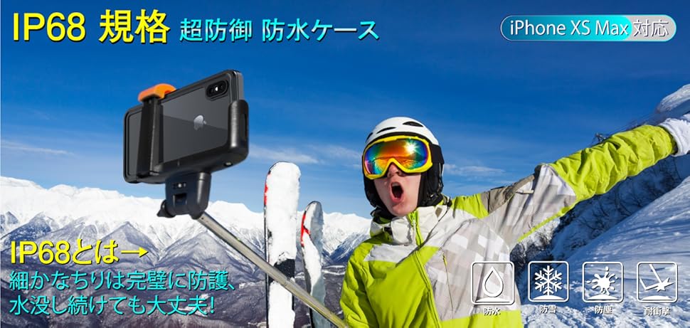 超防御の防水性能を持つ、水、雪、汚れなどからスマホをしっかりと保護します。海辺、プール、スキー、登山などのアウトドア活動はもちろん、お風呂や雨の日などの様々な場面でも活躍可能。
