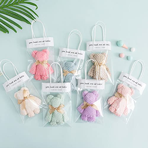 Alutaio タオル12個セット ハンカチ プチギフト ハンドタオル プレゼントプチギフト 個包装 かわいい パールくまさん ベアー ギフト 景品 退職 退院 引っ越しの挨拶 結婚式 お返し粗品 メッセージカード ラッピングバック付き (パールくまさん+メッセージカード+高級半透明手提げ袋 12セット)